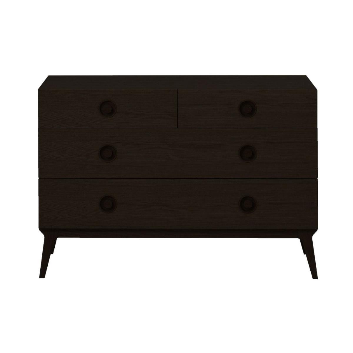 This Valentine chest of drawers by Matthew Hilton features the signature tapered leg detail of the contemporary Valentine range, which lends a visual balance to the piece. Raised up from the ground, the chest creates a feeling of space by keeping sight lines around the room clear. Additionally, it makes it far easier to clean around the bedroom furniture.