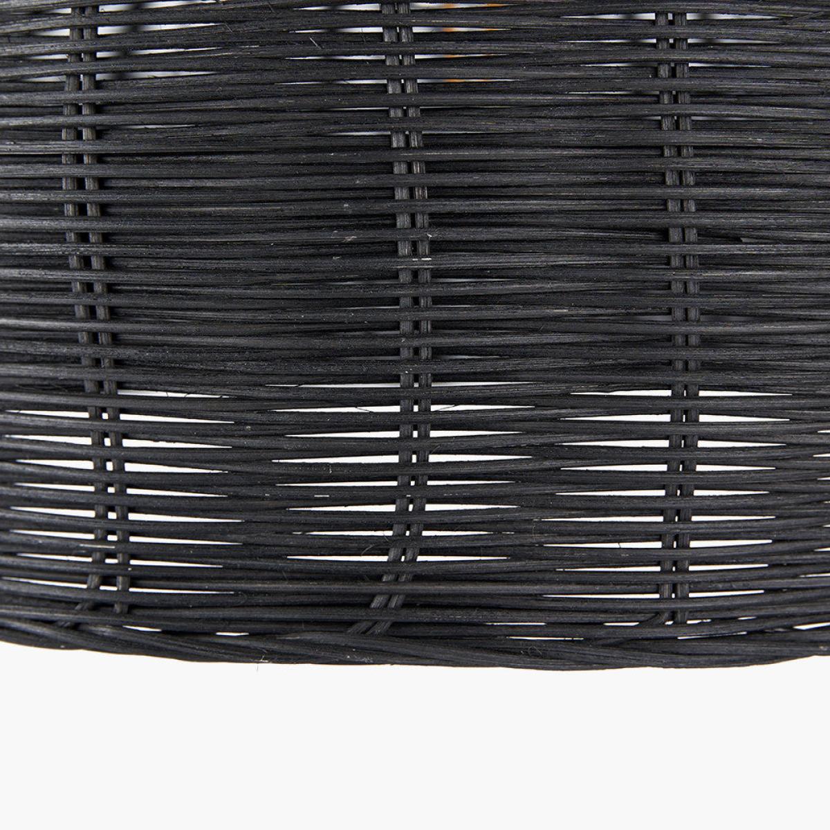 This dome shaped pendant is handwoven from beautiful rattan. Finished in black, the delicate weave design becomes striking, creating the perfect centre piece. The design allows the light to shine through, creating eye-catching patterns on the ceiling. This dome shaped pendant is handwoven from beautiful rattan. Finished in black, the delicate weave design becomes striking, creating the perfect centre piece. The design allows the light to shine through, creating eye-catching patterns on the ceiling.