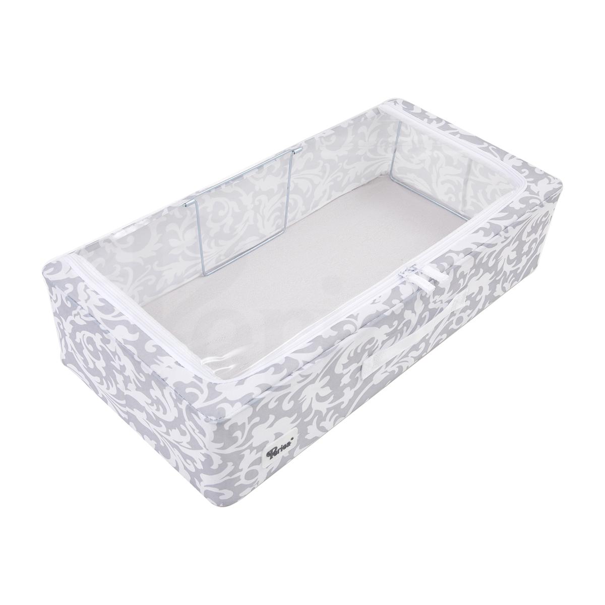 Casey Folding Under Bed Storage Box with Collapsible Steel Frames - Grey Damask / 25l