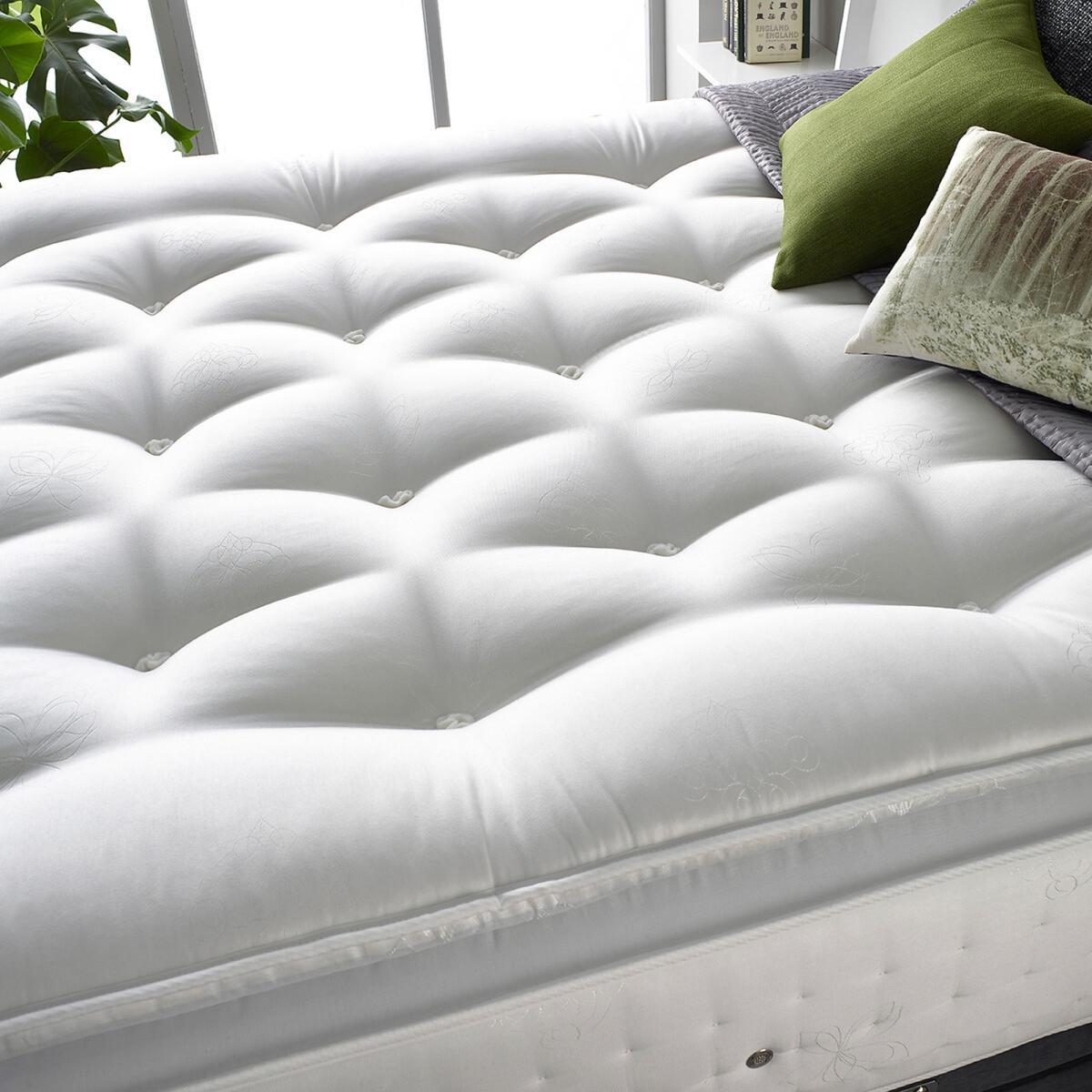 Please note: this product cannot be delivered to all Offshore Islands, Northern Island or Republic of Ireland. This product will be dispatched by one of our trusted suppliers. You’ll be contacted by their selected courier about your delivery. Please note this item will be delivered to your room of choice. Our handcrafted Cashmere 1000 Pocket Pillowtop is a 30cm deep mattress featuring layers of quality natural fillings and 1000 individually nested pocket springs and a luxurious hand-tufted pillow top. Covered in a breathable satin weave damask fabric the mattress incorporates an airflow system that is vented on all four sides to allow the expulsion of warm air keeping the mattress fresh and cool. Using a high count of pocket springs that can each move independently of one another means that pressure is relieved exactly where you need it on the mattress and that a movement on one side of the mattress will not affect the support anywhere else helping to prevent you been woken by a restless partner. The pillowtop features dual layers of natural fillings topped with a 250gsm cashmere wool blend which helps you stay warm in winter and cool in summer by acclimating to the natural environment with a comfortable and supportive 50mm polycotton rebound layer which is then tufted by hand for a sumptuous feel and medium support. Due to the natural materials used in the construction of this mattress, it will require a breaking in period. This means the mattress will feel considerably firmer during the first week to 2 weeks before settling into the medium-firm support that it is designed to provide. Product Dimensions: Single: 30cmx90cmx190cm. Small Double: 30cmx120cmx190cm. Double: 30cmx135cmx190cmKing:30cmx150cmx200cm Super King: 30cmx180cmx200cm. Please remember to measure your available space before ordering. Packaged Dimensions: Single: 190cmx 90cmx 30cm Weight: 30.1kg. Small Double: 190cmx 120cmx 30cm Weight: 35.1kg. Double: 190cmx 135cmx 30cm Weight: 45.1kg. King: 200cmx 150cmx 30cm Weight: 50.1kg Super King: 200cmx 180cmx 30cm Weight: 60.1kg