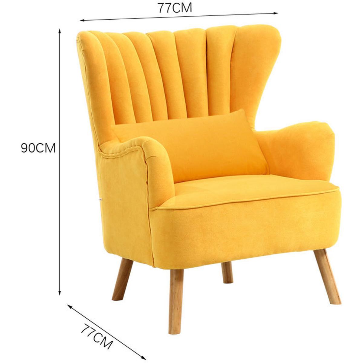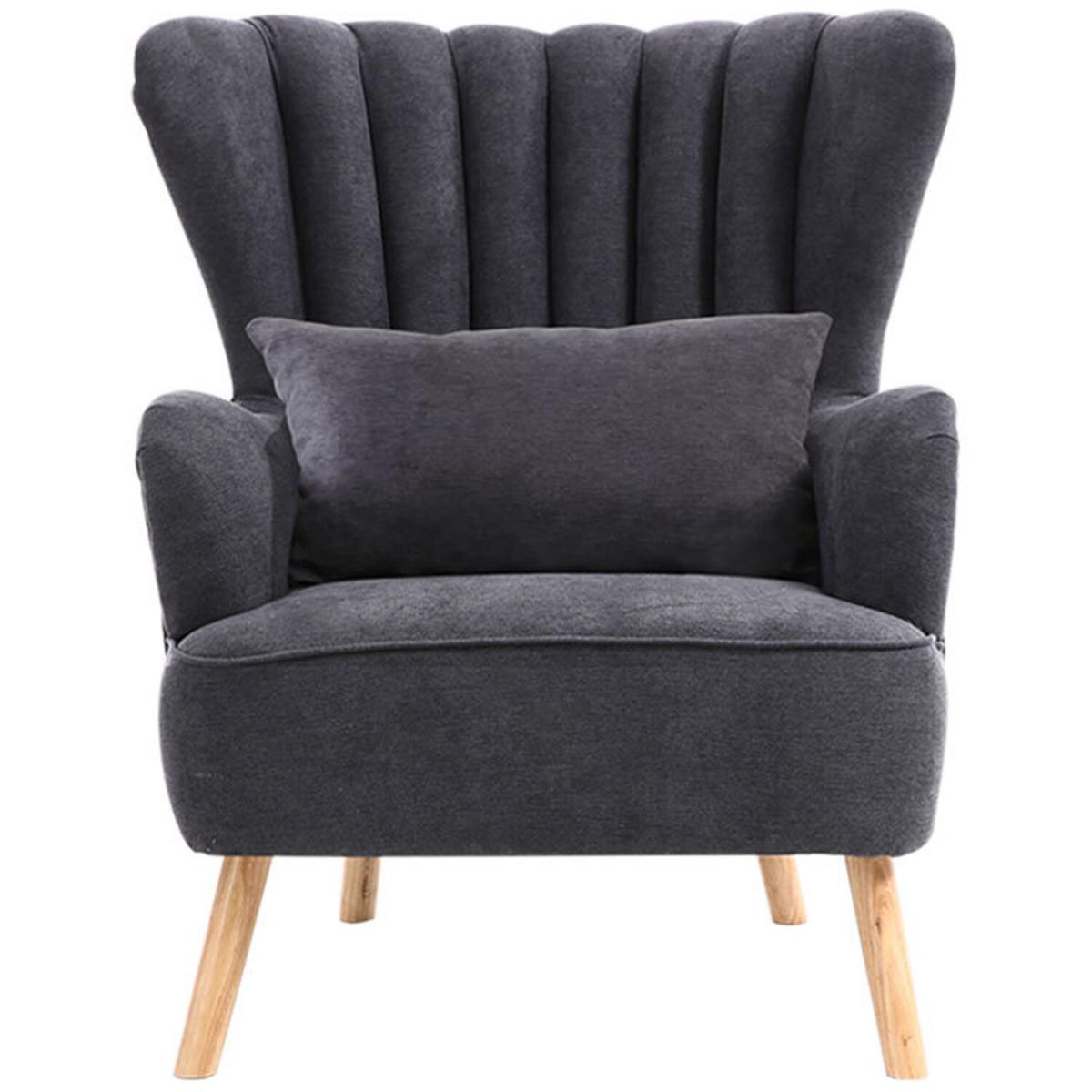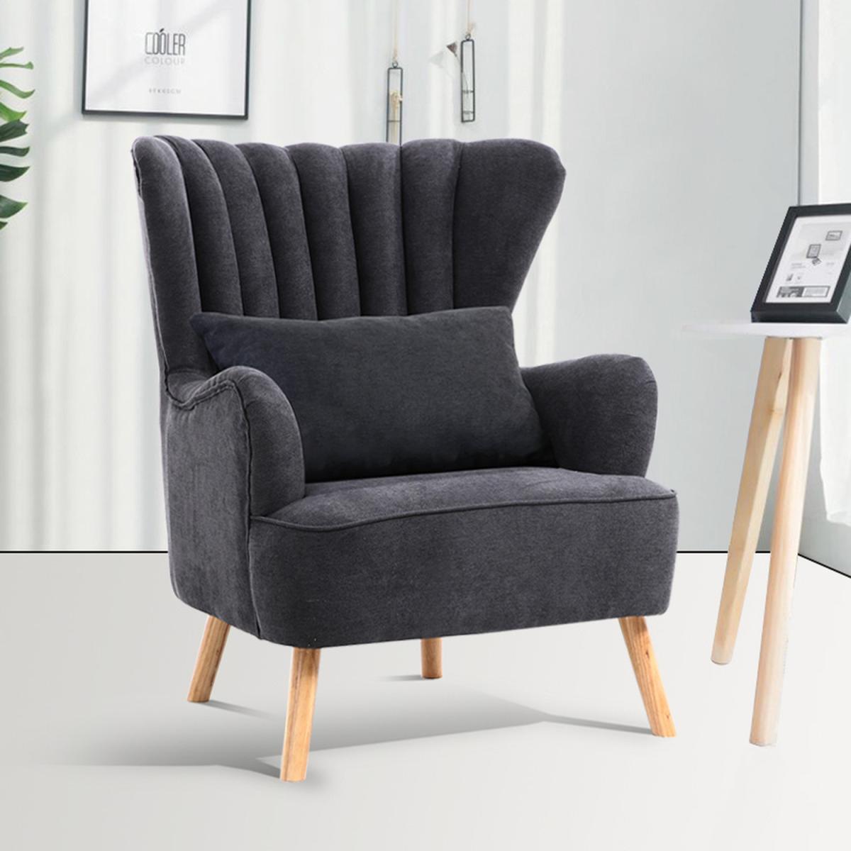 Choose this elegant single chair and decorate your home. Its plush padding is upholstered in linen fabric in a selection of colours. It's more advanced that the chair finished with wooden legs and curved wingback, which has deep pulled lines for decoration. Assembly is required.