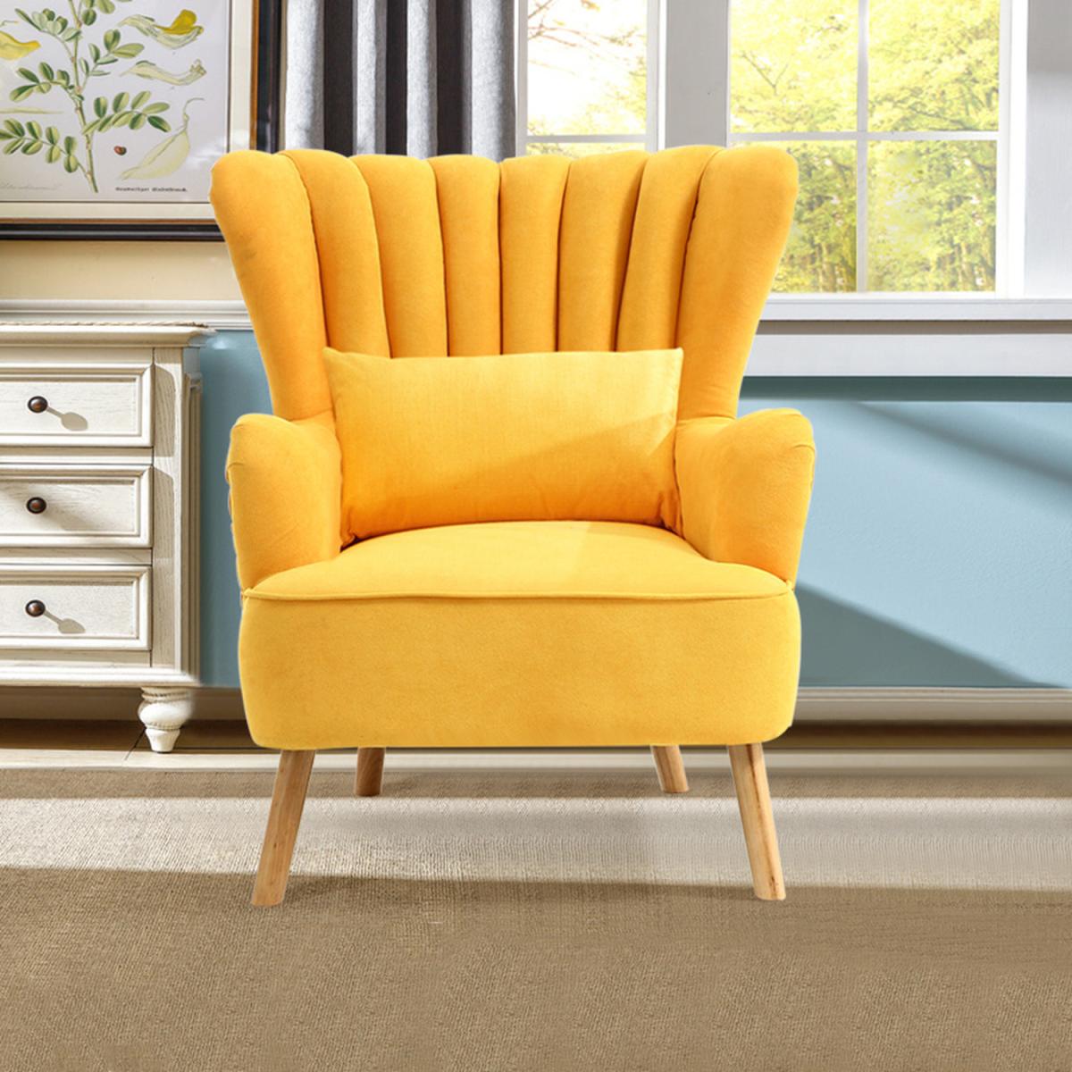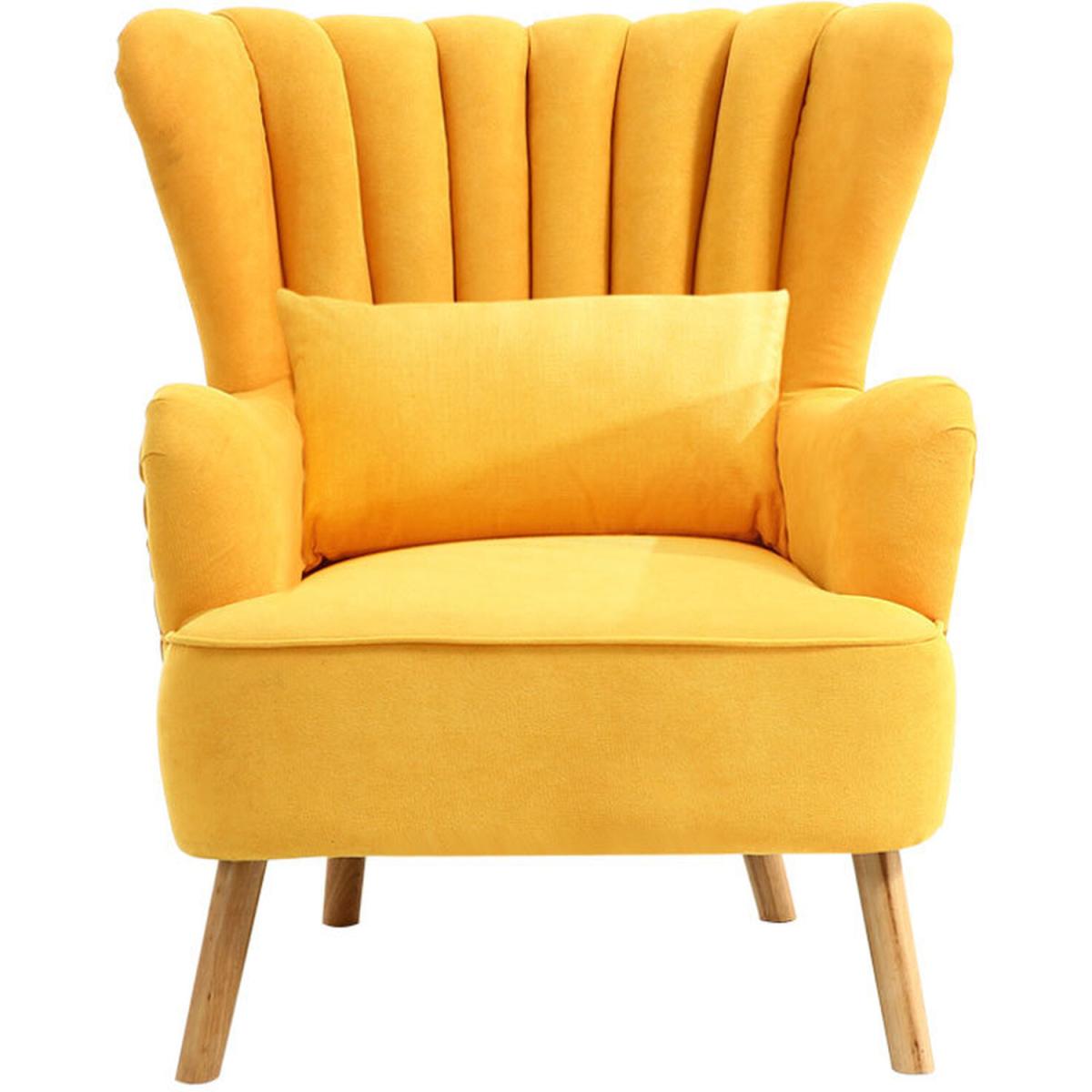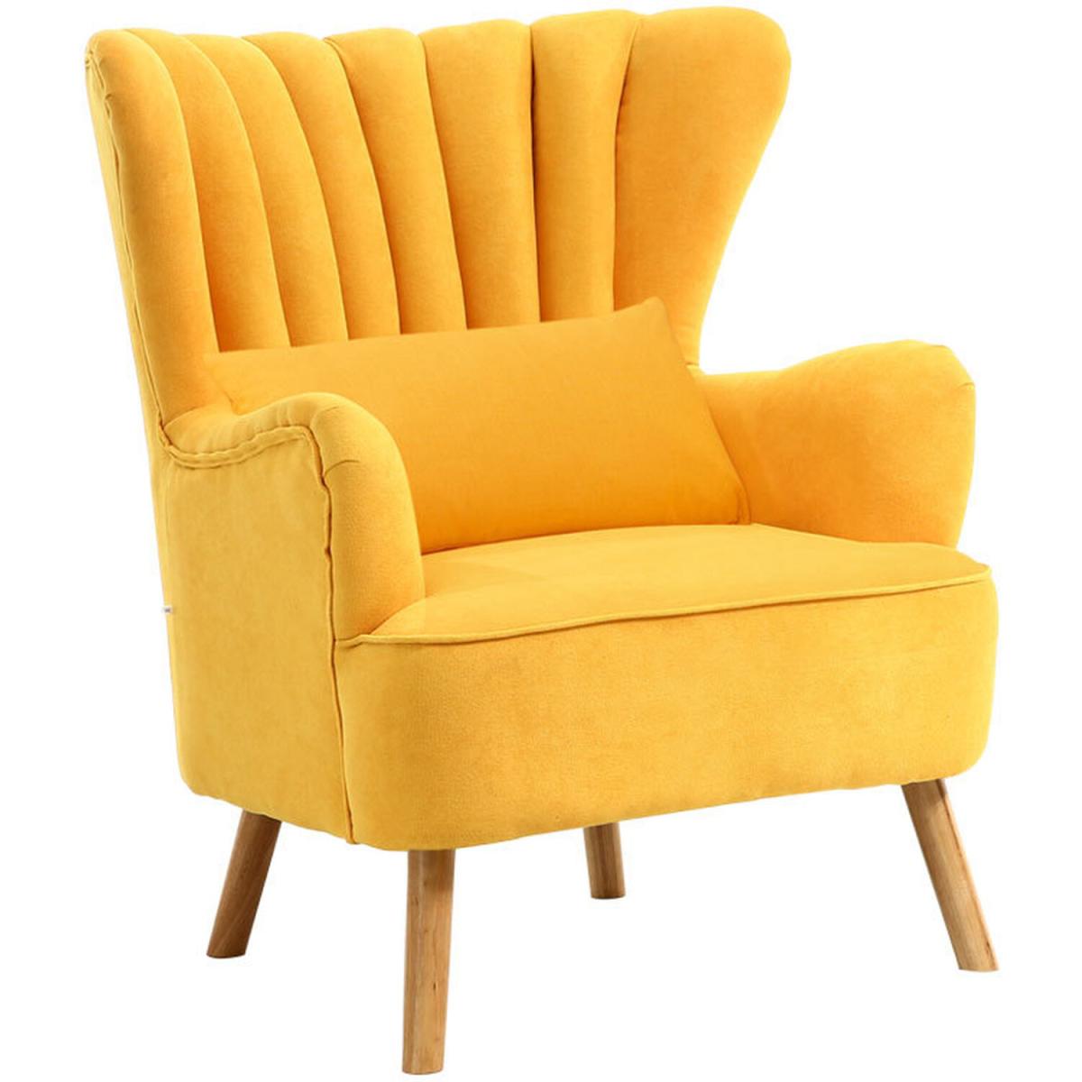 Choose this elegant single chair and decorate your home. Its plush padding is upholstered in linen fabric in a selection of colours. It's more advanced that the chair finished with wooden legs and curved wingback, which has deep pulled lines for decoration. Assembly is required.