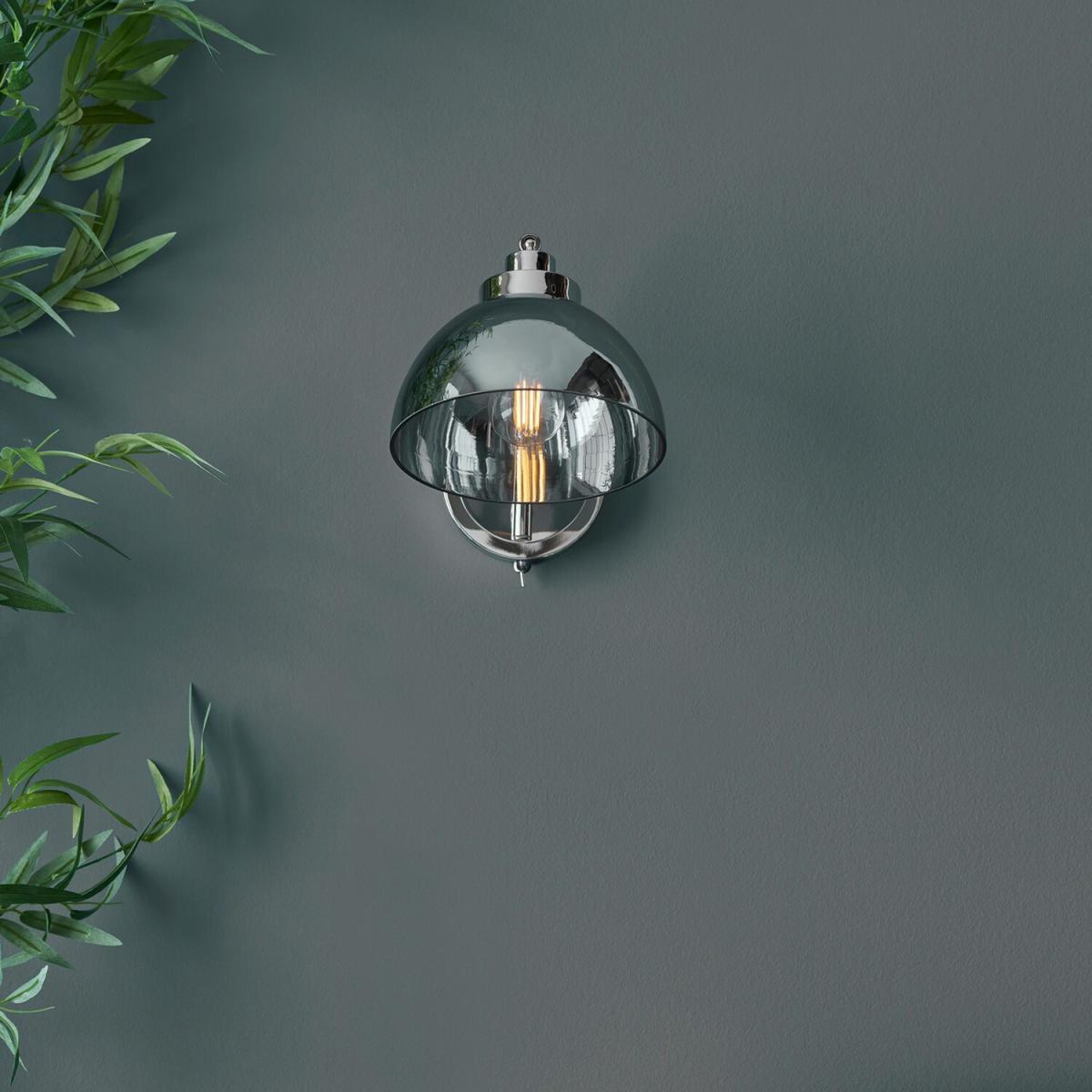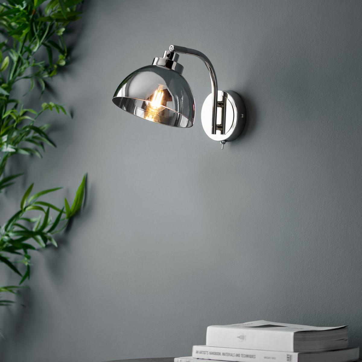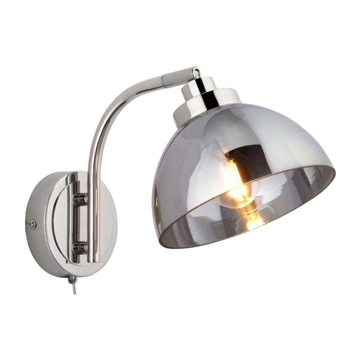 A modern silhouette with a contemporary bright nickel plated finish and smokey mirror effect tinted glass. Creating a stylish interplay with light this is the perfect wall light for bringing the smart metallic design style into your interiors. Other items available in this range.