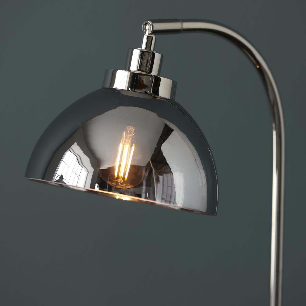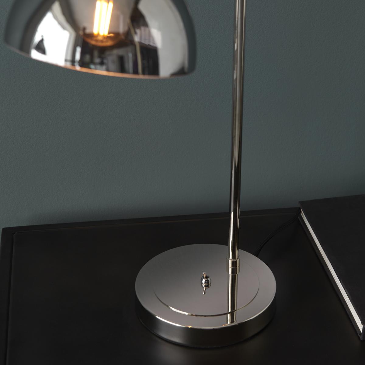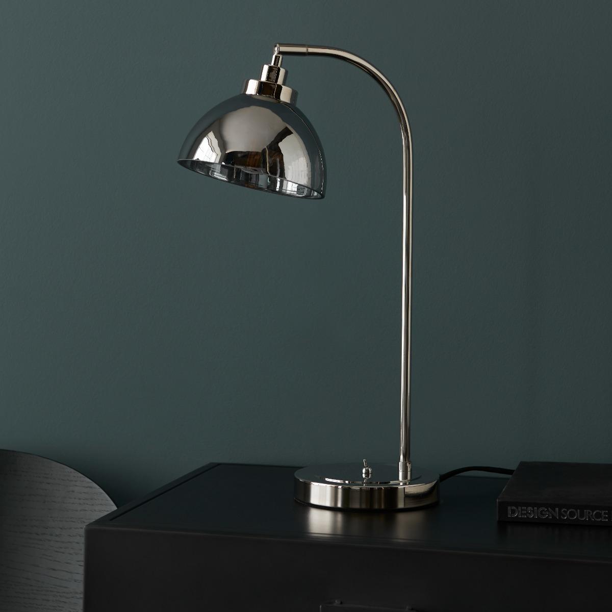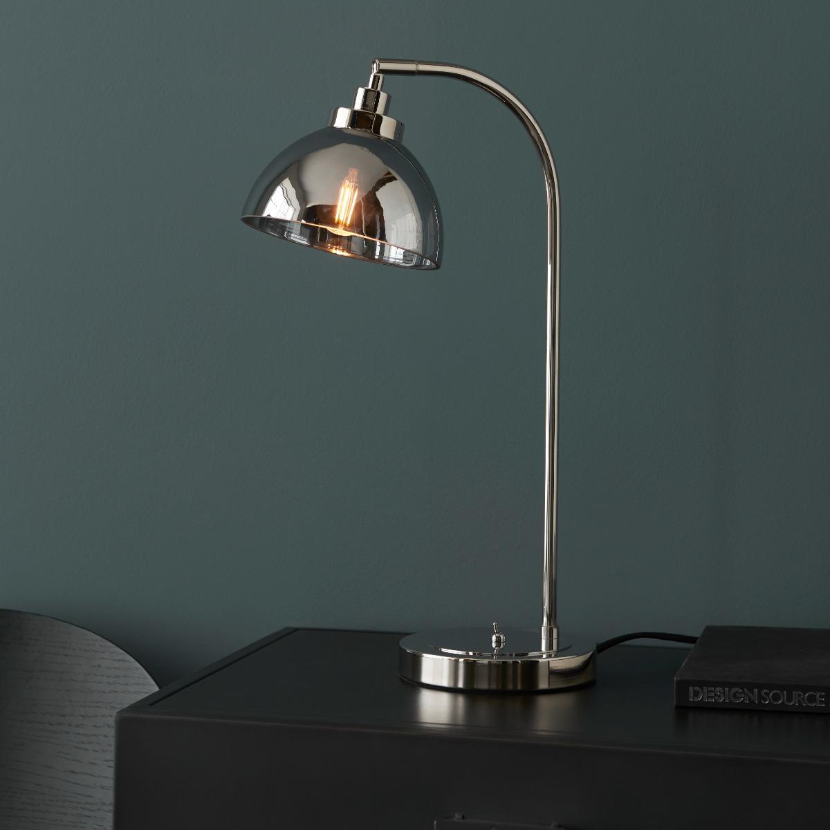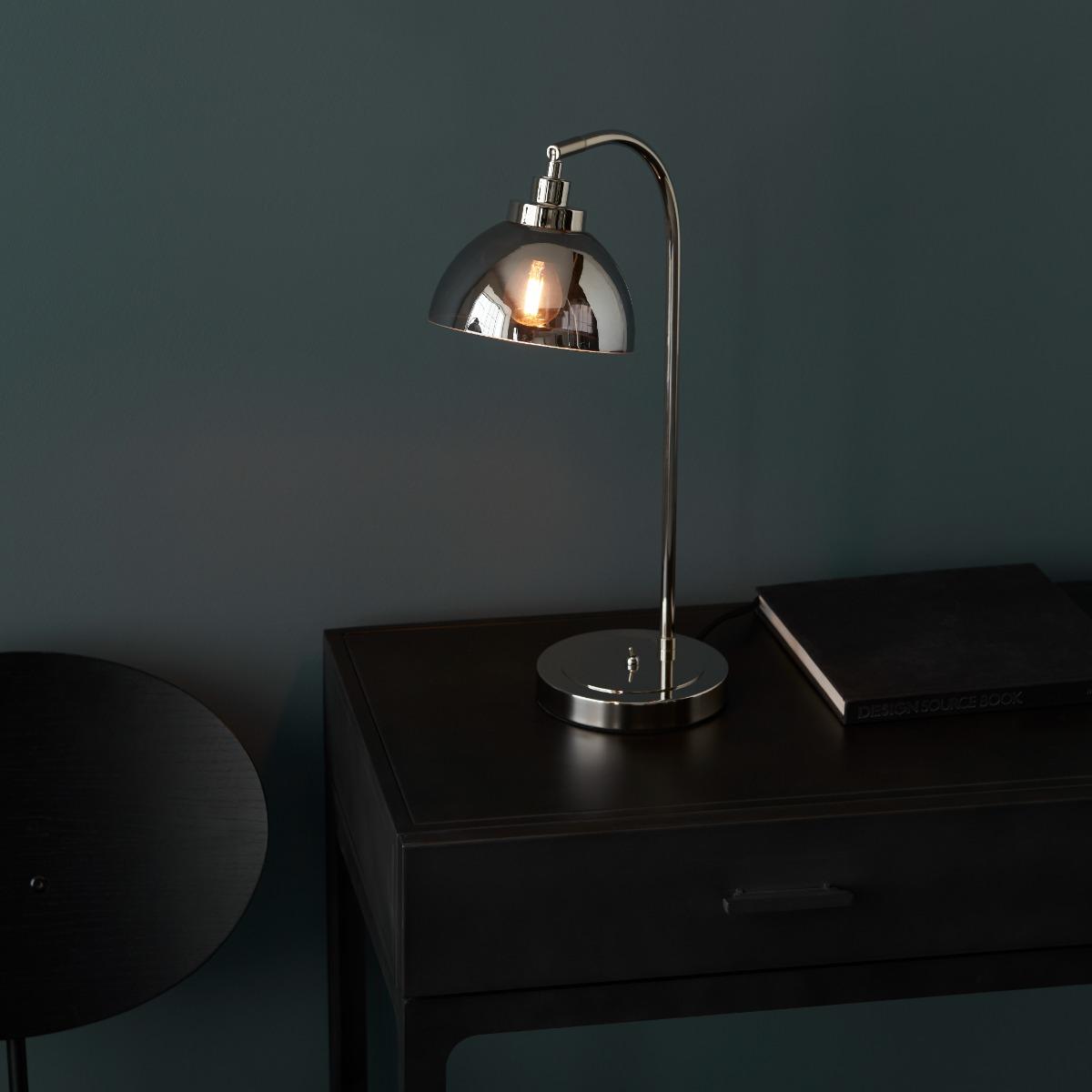 Illuminate your workspace or bedsite table with the Caspa Table Lamp with beautiful glass shade, touch to turn on fixture and hi polish finish.