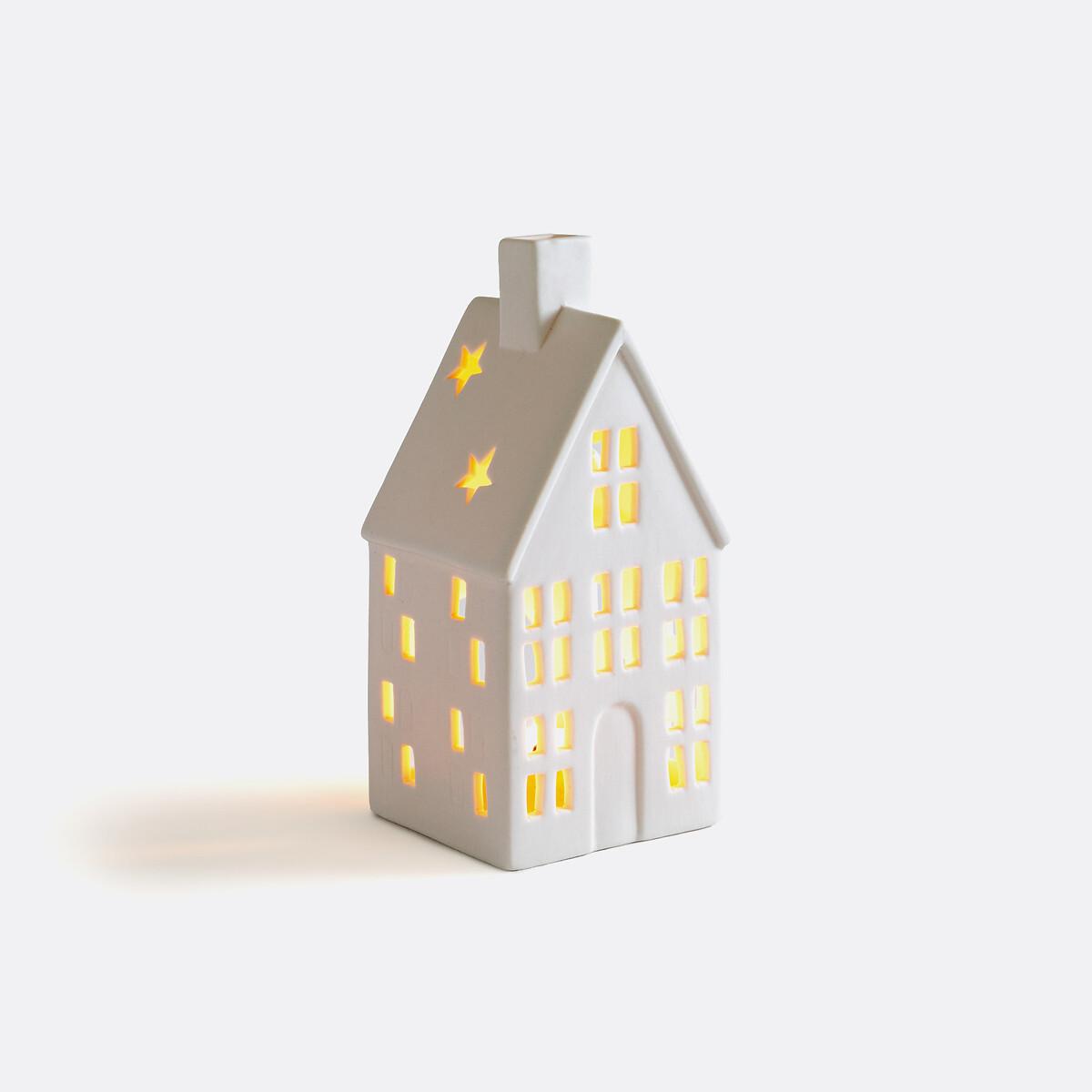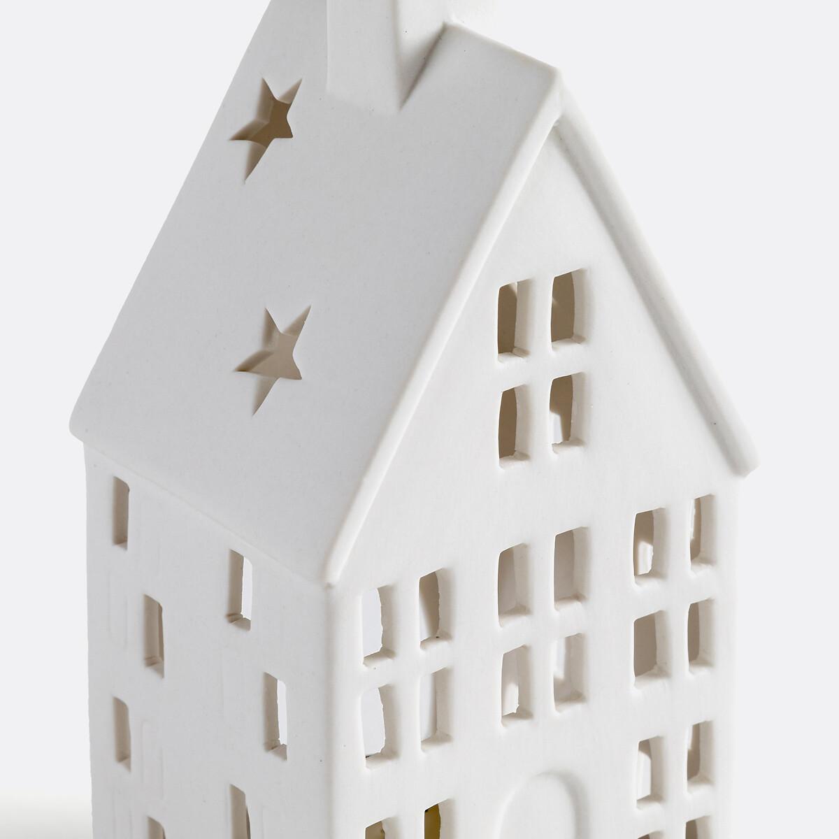 Hotel ceramic candle holder. You can insert a tealight candle to diffuse a soft light.Product Details • Ceramic candle holder • Hotel shape • For tealight candles (not provided)Dimensions • Length: 7.8cm • Height: 16cm • Depth: 7cm/3"Dimensions and weight of parcel1 parcel • W25.1 x H12.6 x D15.1cm, 0.6kg