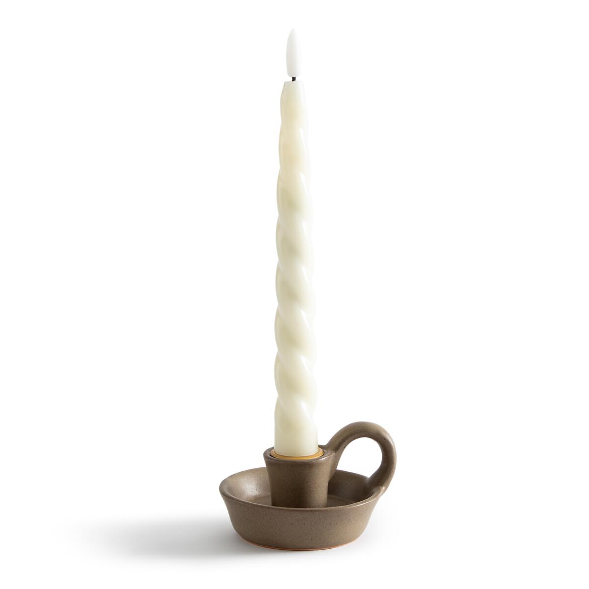 Porcelain candle holder, glazed finish, for candle with 2cm diameter. Product Details • Porcelain, glazed finish • Suitable for a 2cm diameter candle. Dimensions • Width: 9.5cm • Height: 6cm • Depth: 8.5cm