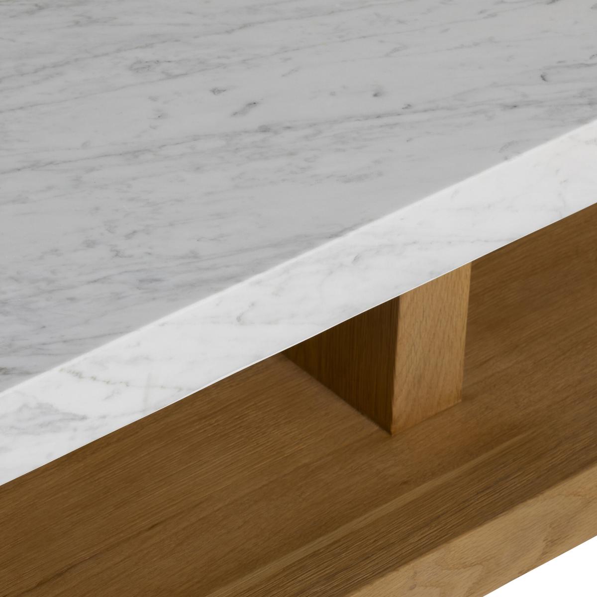 I’m a fan of the Marble Casper table for its clean lines and blend of cool white marble with warm oak. Its low, rectangular silhouette sits naturally in contemporary or Scandi-style living rooms, and it also works well in minimalist or mid-century schemes. For styling, keep the top uncluttered: a slim tray with a couple of coffee-table books, a small plant or sculptural vase. Use the shelf underneath to stow magazines or a decorative box, so you retain both the table’s airy feel and its practical storage.