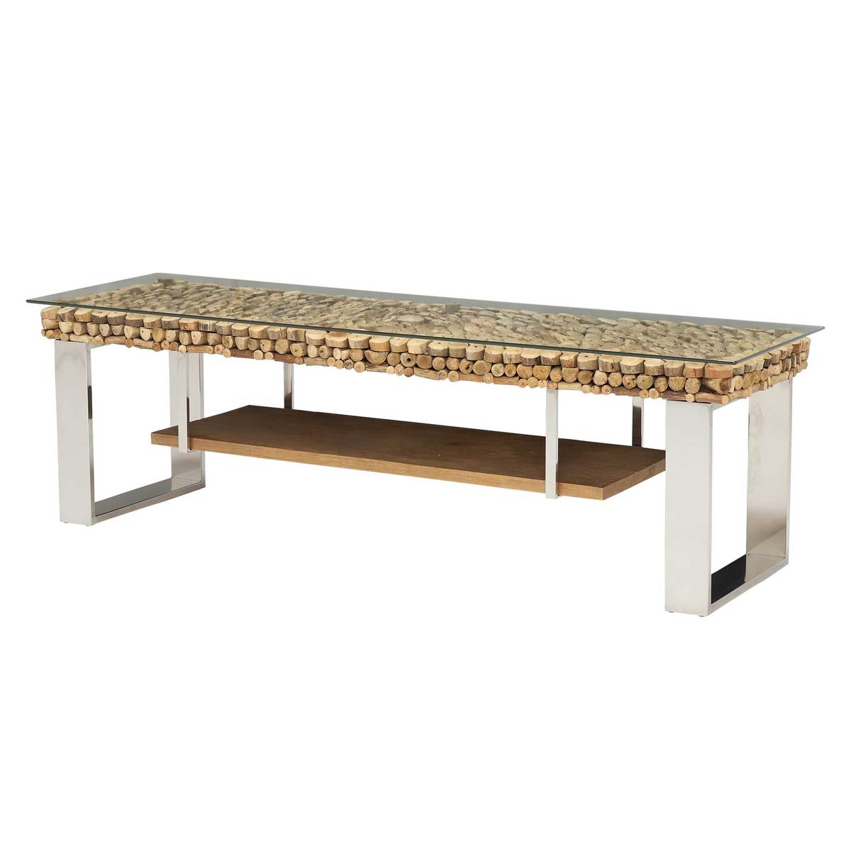 This Caspian buffet TV unit is sure to captivate your living space with its beautiful natural driftwood top and contrasting stainless steel legs. Its handy fixed pinewood shelf features stunning natural wooden characteristics, providing a rustic modern feel, sitting low to the floor it is perfect for all of your entertainment devices while its thoughtful design is sure to keep all wires predominantly out of view. Generously sized, you can also accessorise with not just your television but a couple of your favourite decorative pieces.