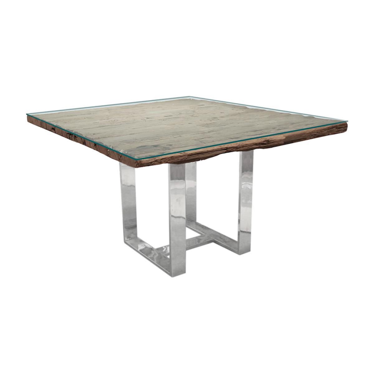 Design. This Square Atlantic Dining Table is the perfect choice for families who love to eat together. Its stylish Railway Wood top and simple Stainless Steel legs give this dining table a unique and stylish finish, bringing a touch of industrial chic into your home.