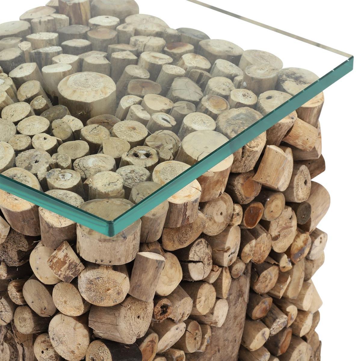 Caspian Solace Natural Driftwood and Glass Sidetable