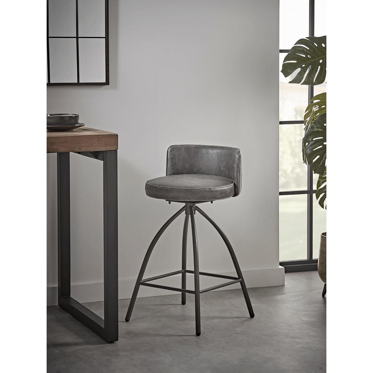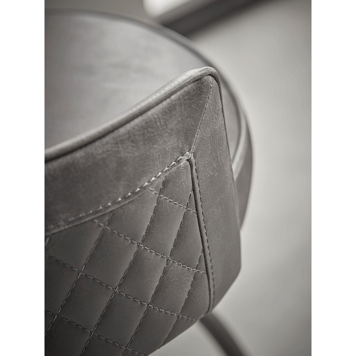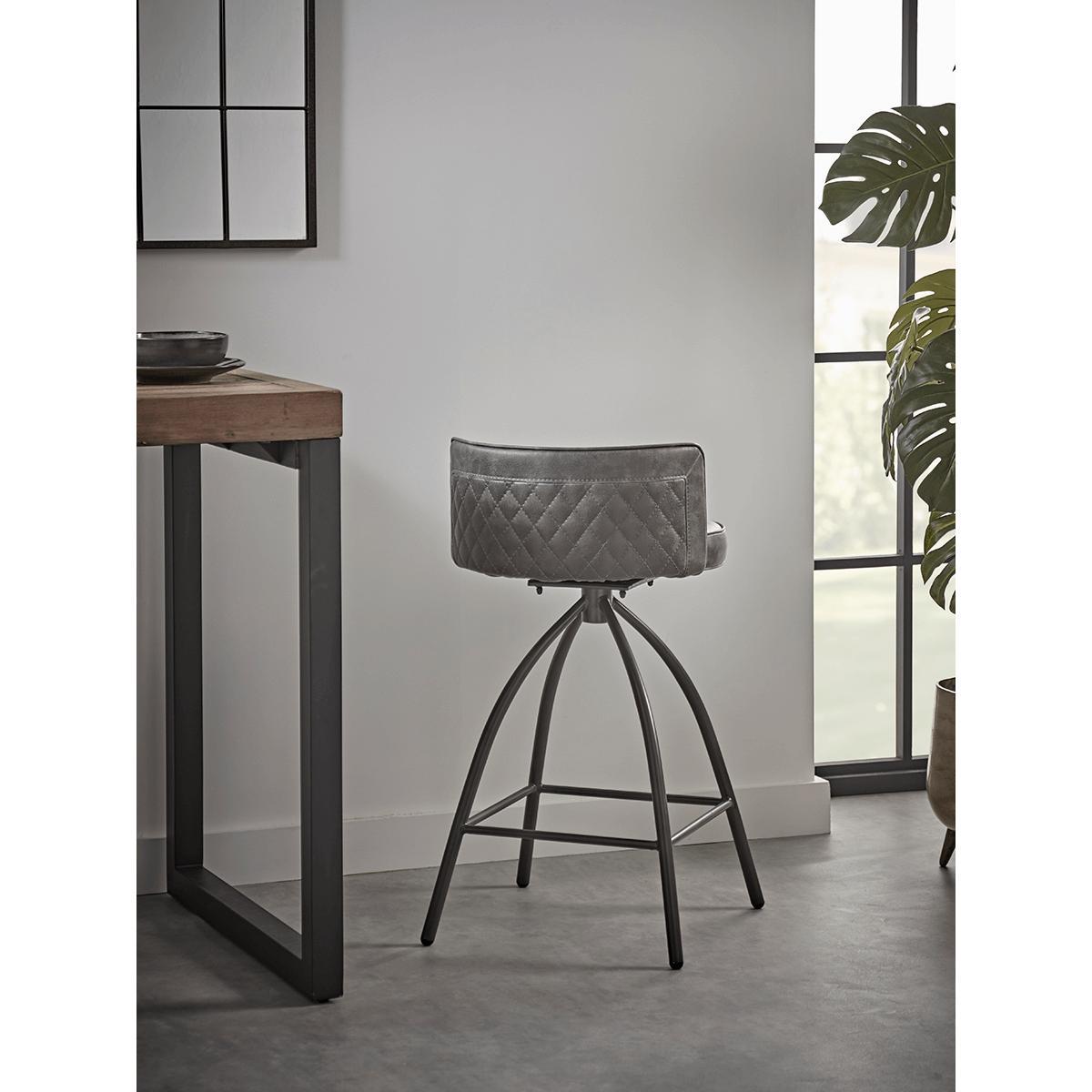 With a fabulous, quilted effect to the back of the seat and a smooth, cushioned inner for comfort, our grey faux leather counter stool features a rounded shape for comfort and style. Each stool has a sturdy, four-legged base cast from dark grey metal, with a footrest for added comfort. Also available in. Tan.