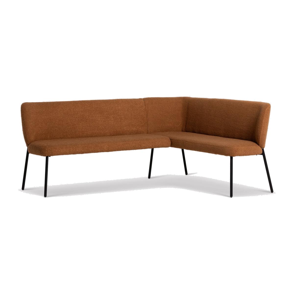 I love this left-hand corner bench for its clean, contemporary silhouette and warm brown boucle - it adds texture without overpowering a room. The slim black metal legs give it a light, airy feel that suits Scandi-inspired, mid-century or modern industrial interiors, especially in an open-plan kitchen-diner or cosy reading nook. For styling, keep cushions simple: think muted greys or off-white linens to contrast the boucle. Layer a jute or low-pile wool rug underneath and flank one end with a slim side table for drinks and books. A couple of throws, neatly folded at the bench’s shorter side, will add practicality and a relaxed vibe.
