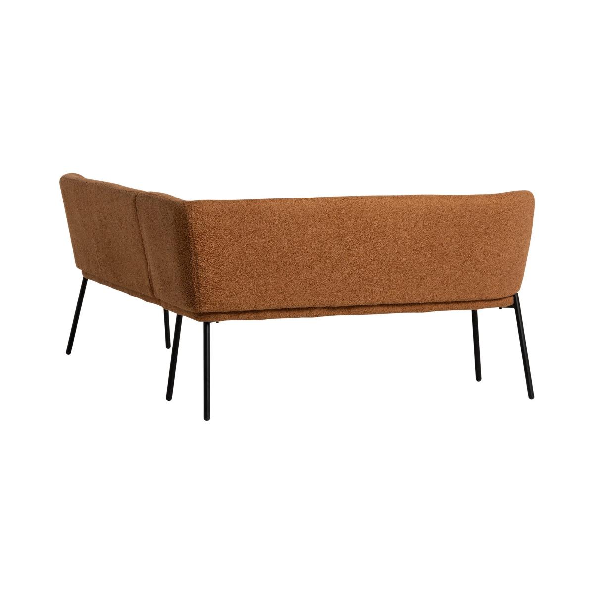 The Cassander Brown Leather Right Hand Facing Corner Bench is where elegance meets function, a statement of timeless charm. Draped in rich brown leather, its surface whispers sophistication and warmth, inviting comfort with every touch. The right-hand-facing design flows gracefully, cradling your space with its purposeful form. Sleek matte black legs anchor the piece, a modern contrast that speaks of strength and subtle artistry. Perfect for intimate gatherings or quiet moments, this bench transforms any corner into a haven of style, blending tradition and modernity in a harmonious balance
