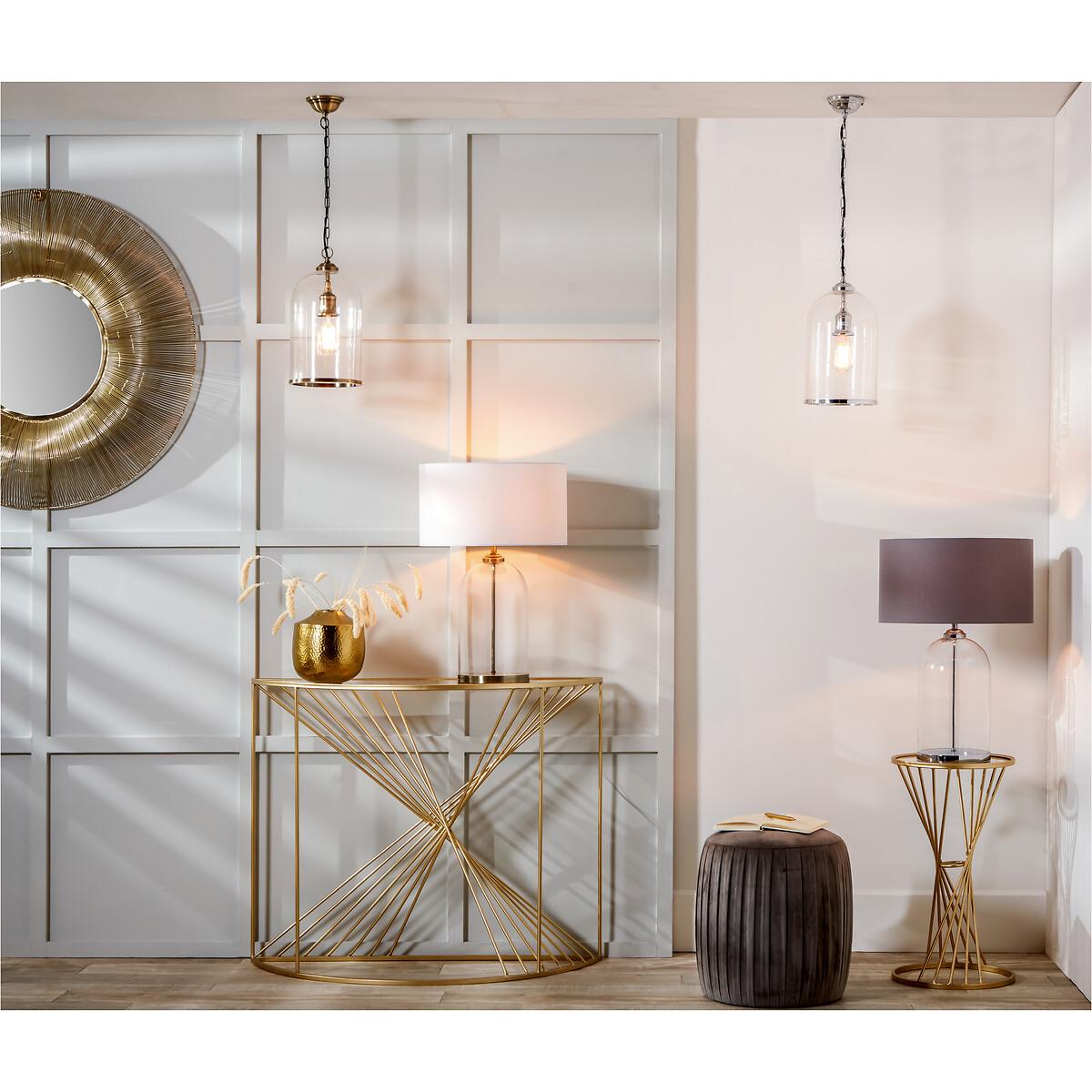 Add some classic charm to your home with this Clear Glass and Antique Brass Table Lamp. Finished in clear glass with antique brass metal detailing and topped with a fresh white faux cotton shade, it will add a subtle elegance to any side table or console. Product Dimensions: 40x 40x 60cm. Weight: 2.4kg Glass 60%, Polycotton 35%, Iron 5%One Size. This product will be dispatched by one of our trusted suppliers. You’ll be contacted by their selected courier about your delivery. PACIF01