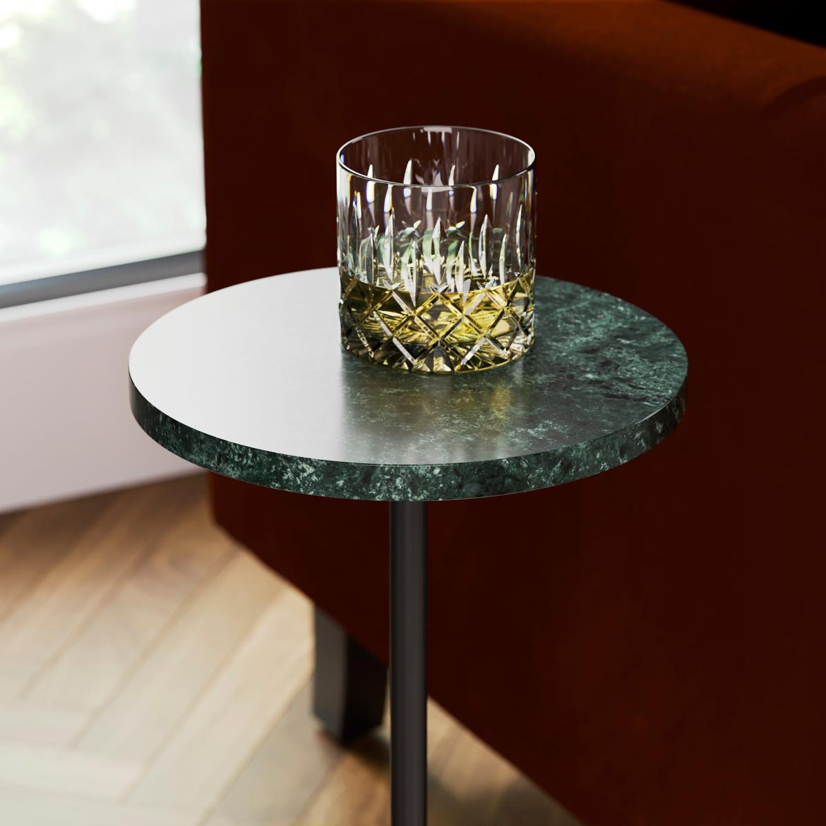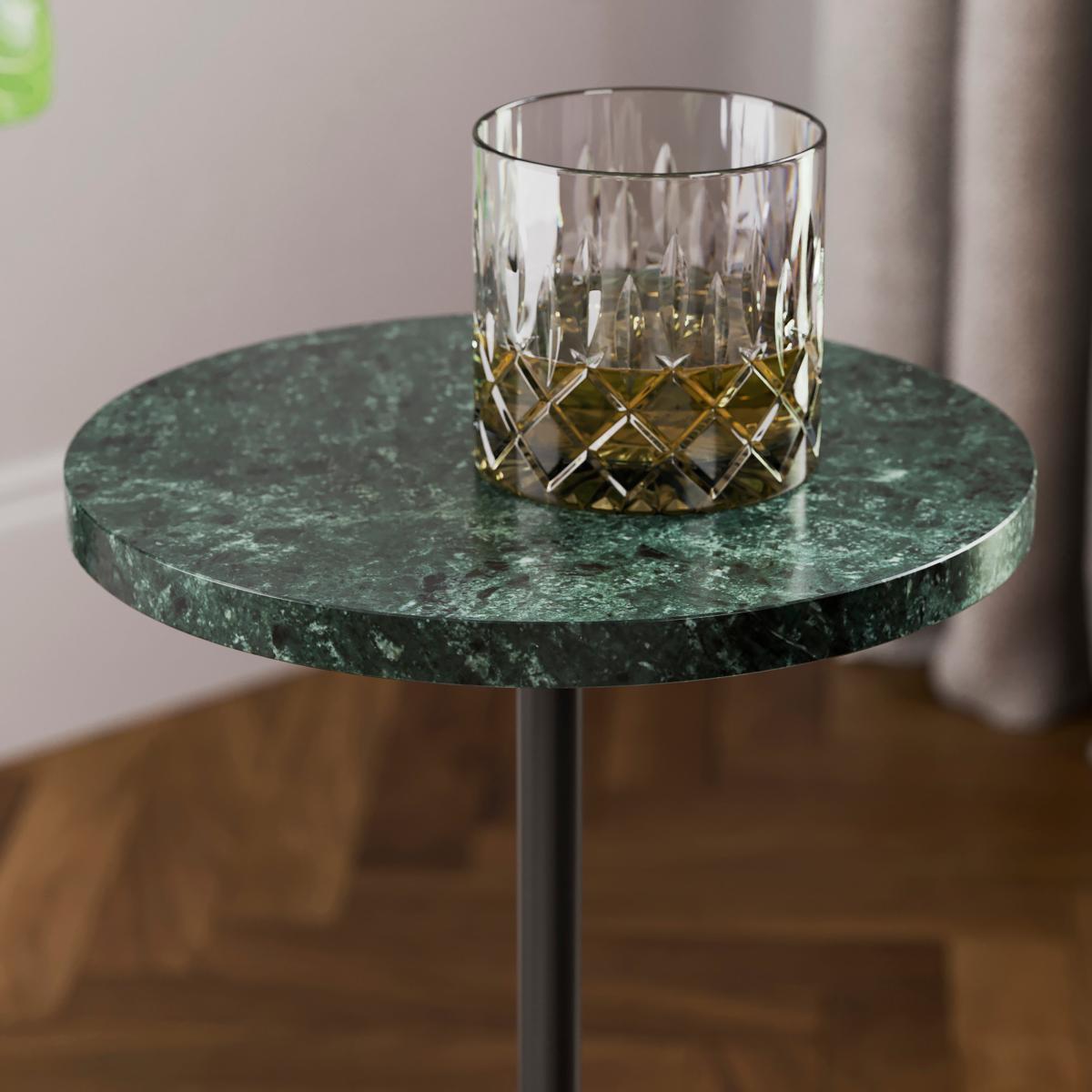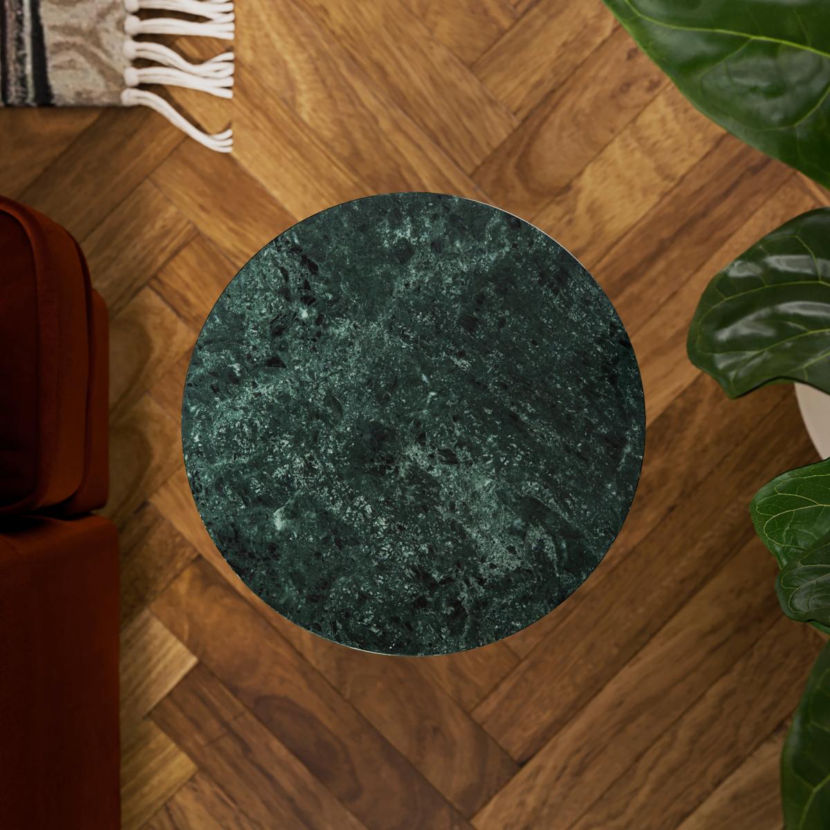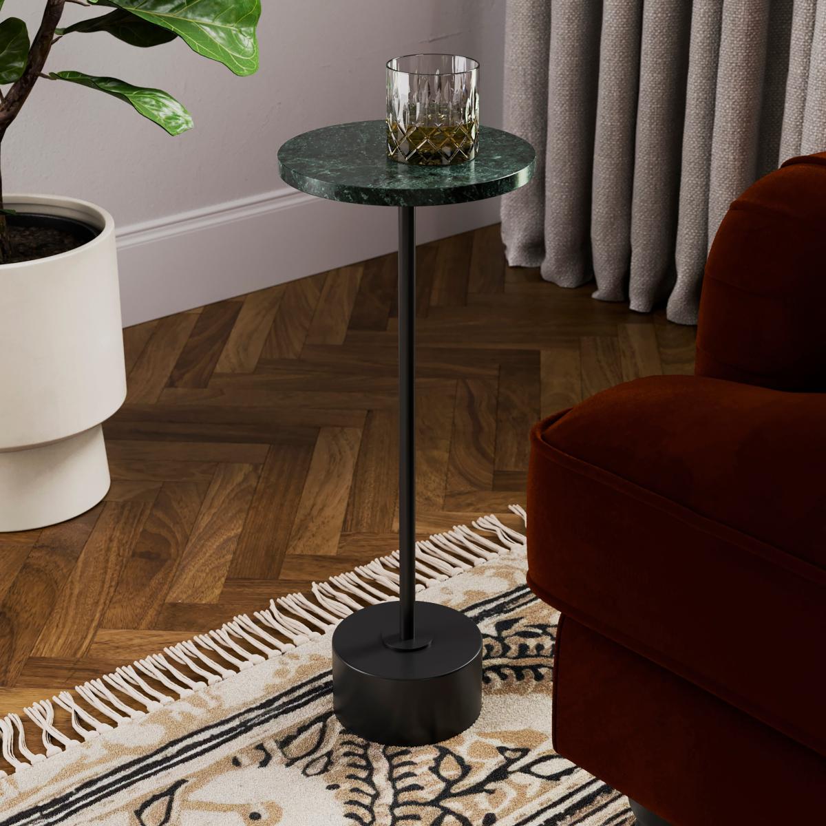 This compact side table is great for adding a touch of luxury and sophistication to a variety of interiors, especially modern or contemporary settings. I love how the green marble top elevates its aesthetic, making it an eye-catching yet versatile piece. It works well alongside neutral sofas or armchairs, offering a pop of colour and texture without overpowering the space. Practical styling tips include using it to display a statement lamp, a small plant, or a favourite book - keeping the surface neat will maximise its visual impact. Its slim profile makes it ideal for squeezed-in spaces or as an accent piece in a layered vignette. Overall, a perfect addition for those looking to elevate their side table game with a subtle but impactful statement piece.