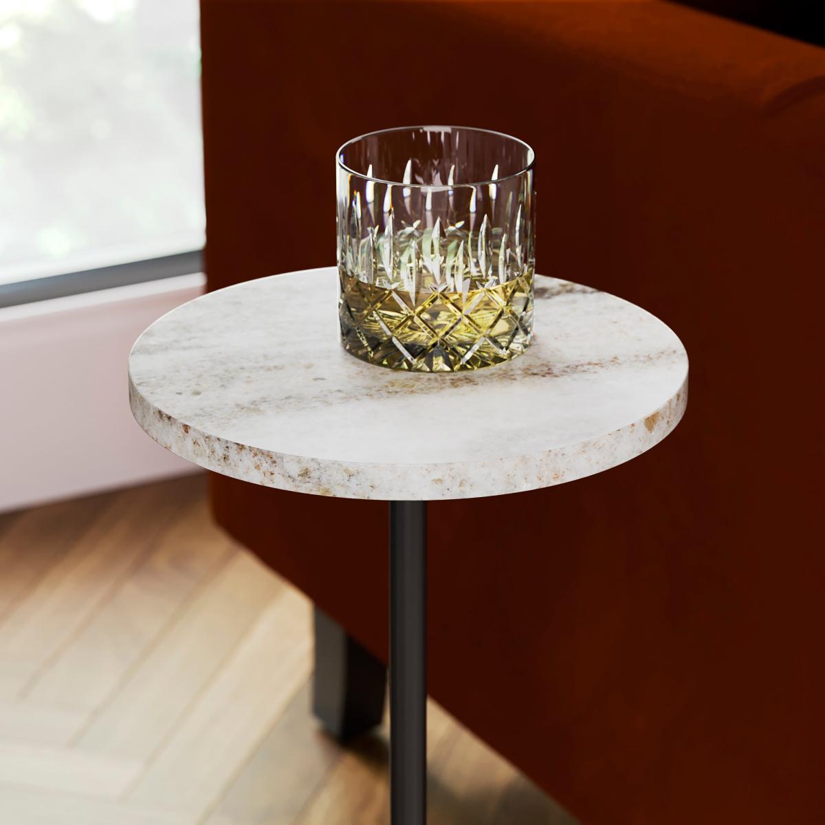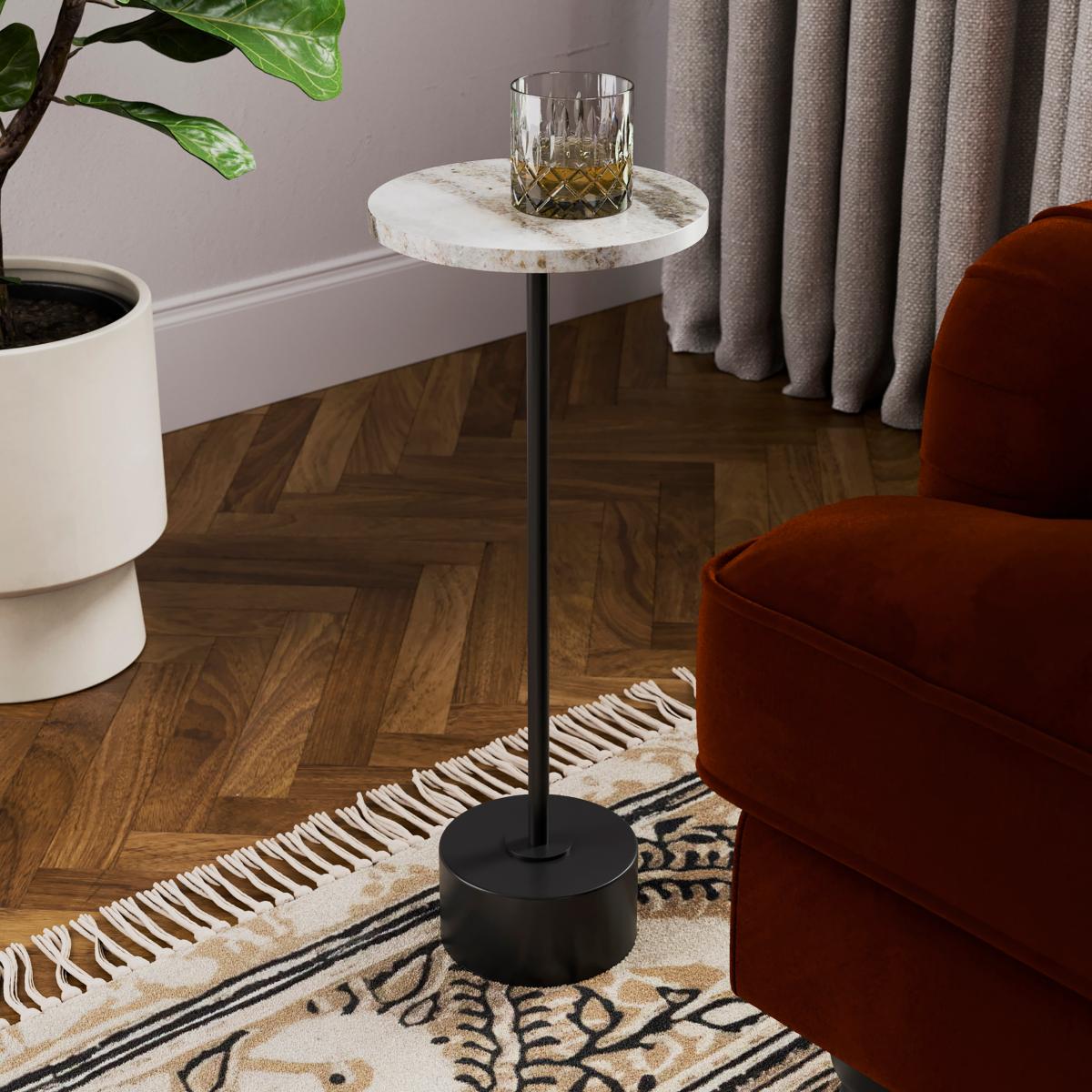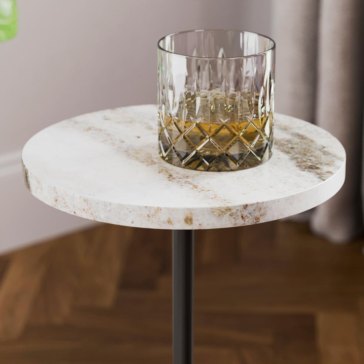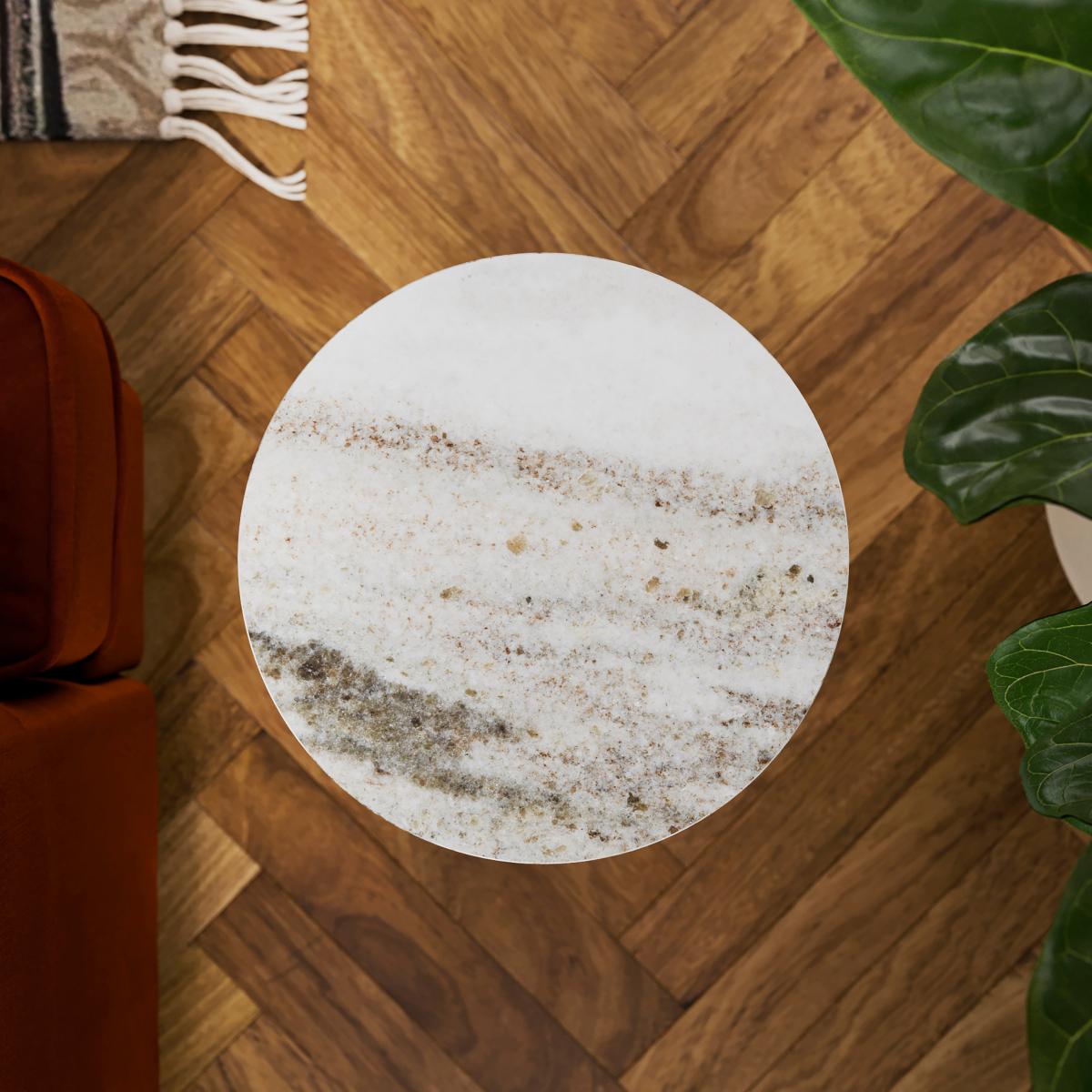 Lacking space? Don't lack in style. Add a functional and stylish element to your living room with the Cassie Compact Marble Side Table. Made with a real marble top and powder coated metal legs, you know you'll be able to admire this for years to come - and when you find you have more space in the future, this side table also makes for a perfect plant stand.