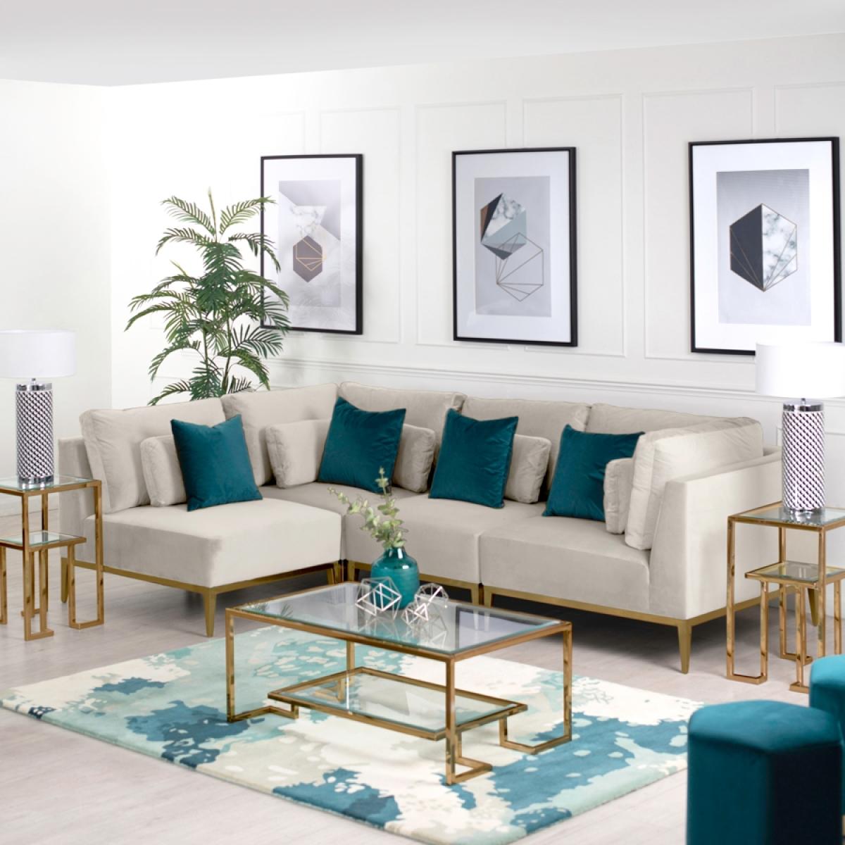 Contemporary design inspired by luxurious Italian interiors. Sprung seat and backrest with deep foam and fibre topping. Cushions filled with a mixture of foam, fibre and feathers. Velvet upholstery fabric. Brushed stainless steel frame with brass finish. Constructed from modular components that simply and securely connect together, allowing for ease of installation and multiple configurations. In the unlikely event that you are dissatisfied with your sofa let us know (within 7 days) and we will happily collect it and fully refund you , including the return shipping cost.
