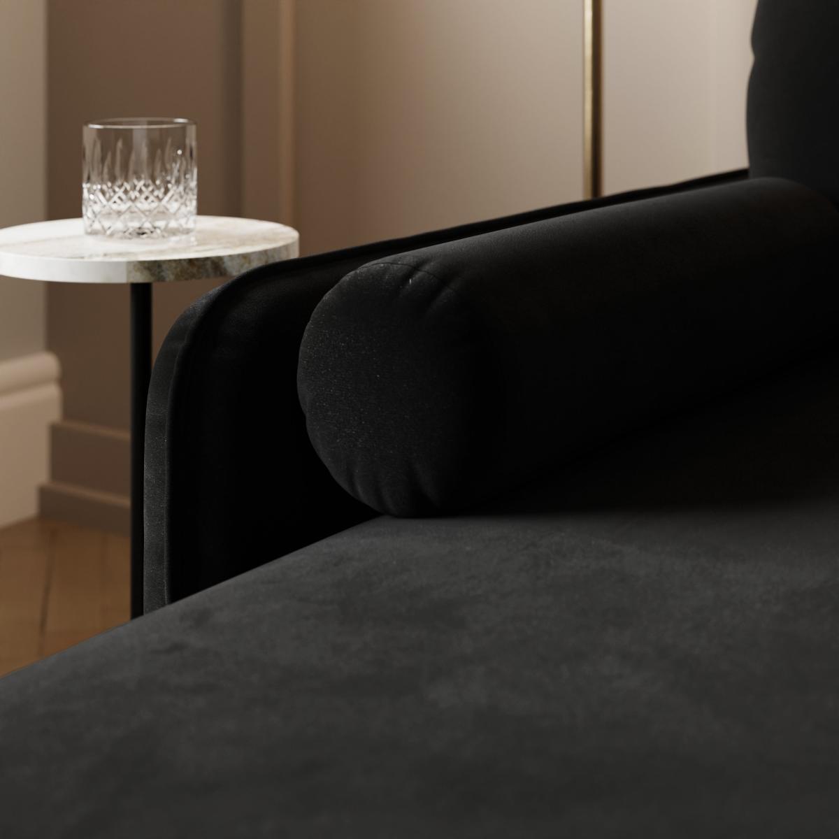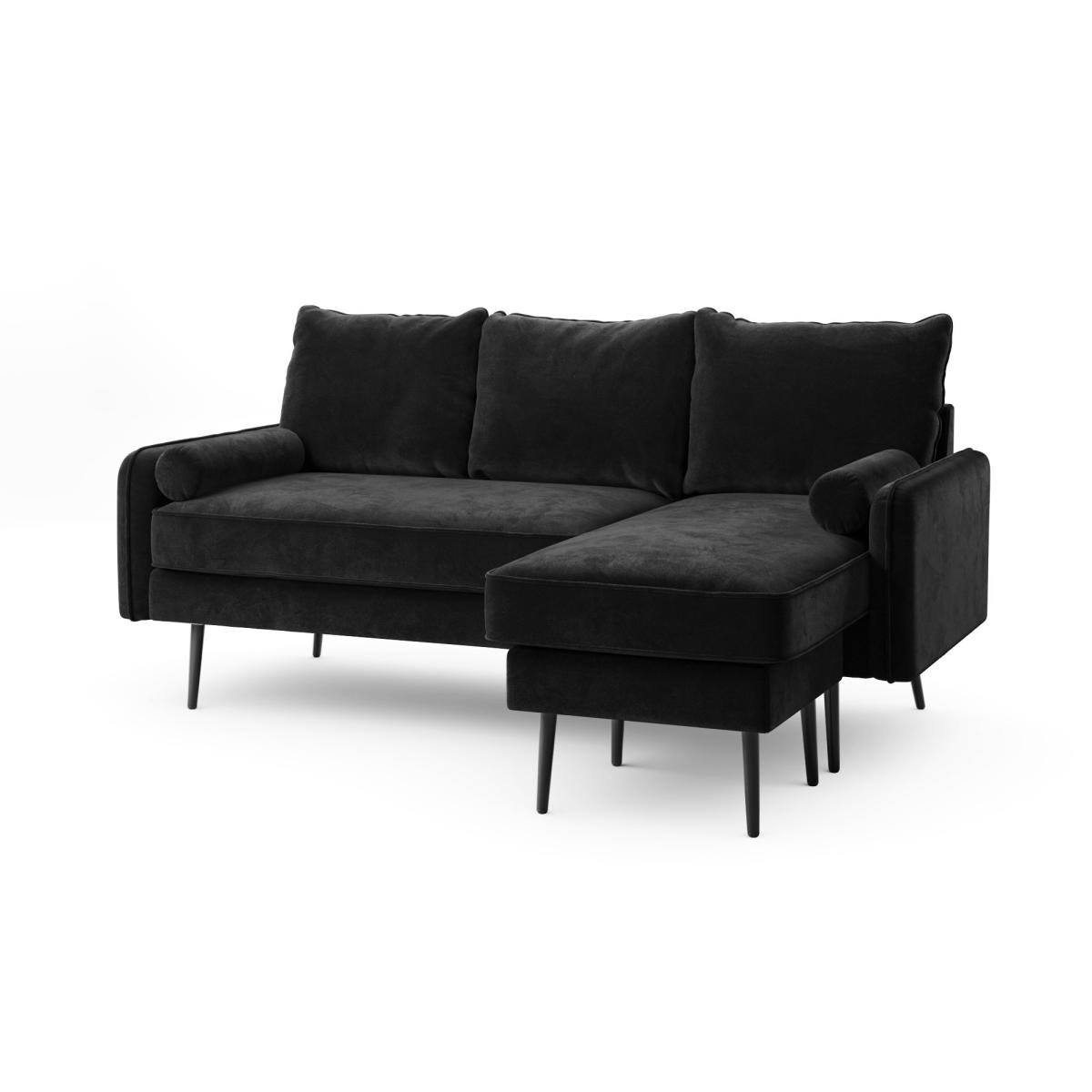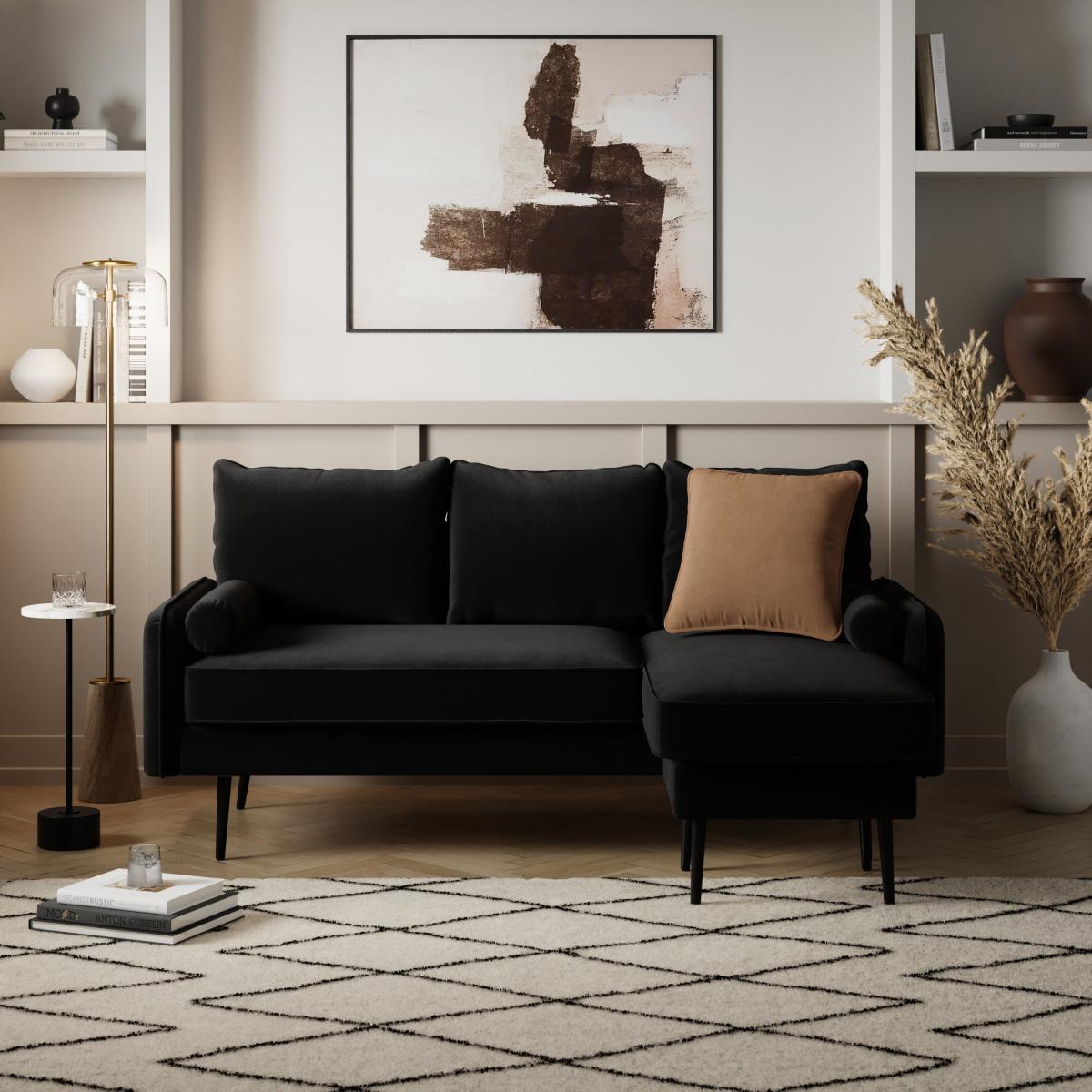 I love this black velvet corner sofa because it instantly adds a touch of sophistication and luxe to any living space. Its reversible design offers flexibility, making it versatile for different room layouts and easy to adjust if your room configuration changes. It works particularly well in contemporary or glamour-inspired interiors, where the velvet’s rich texture complements other plush materials and metallic accents. For styling tips, pair it with metallic or glass side tables and add cushions in contrasting colours or textures-think jewel tones or textured knits-to break up the dark tone. Keep accessories simple and elegant to let the sofa be the statement piece, ensuring your room feels balanced and inviting.