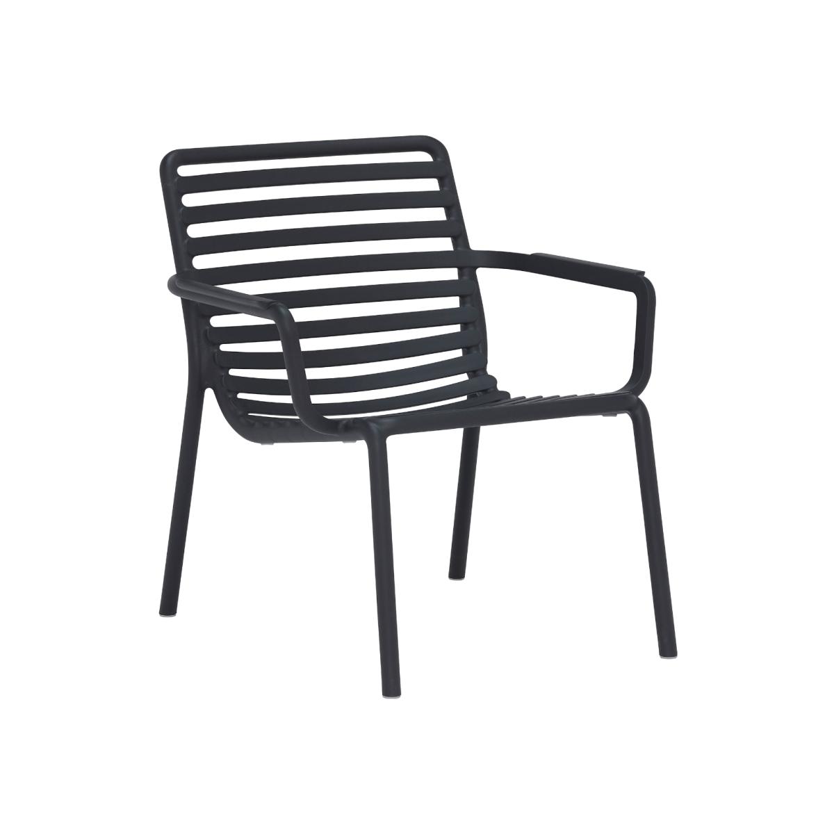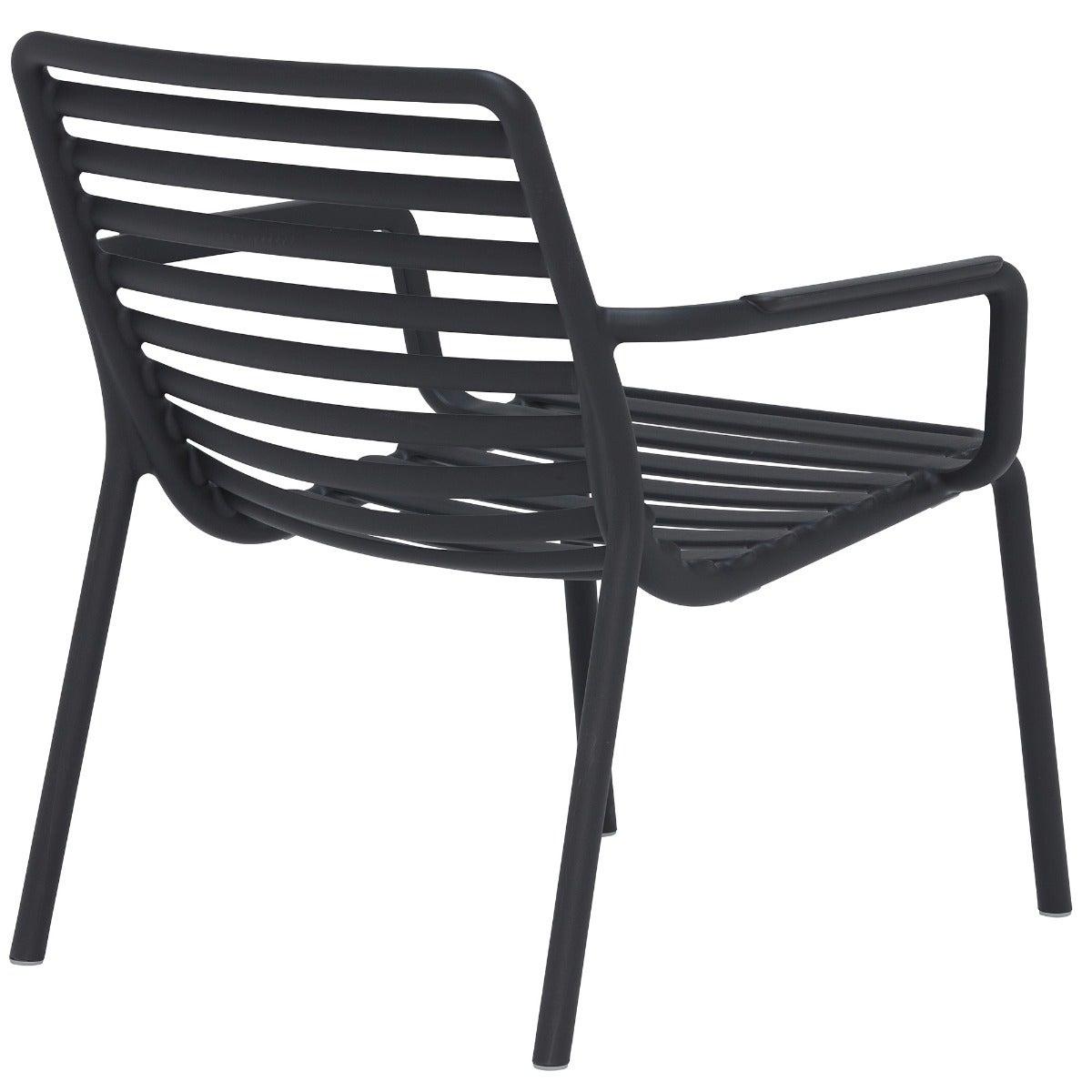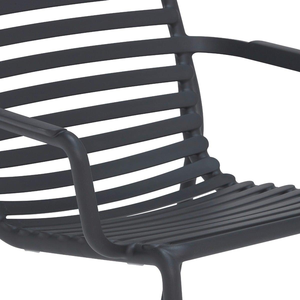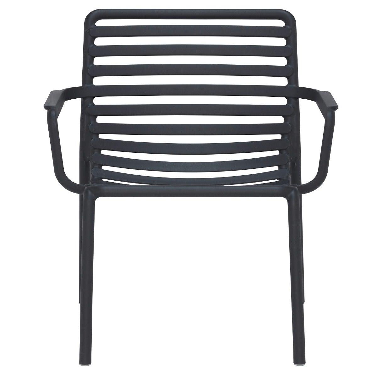 Design. The sleek Cassis Garden Chair, Anthracite, will complete your ultra-modern outdoor space perfectly. Elegantly displaying horizontal slats for a clean uniform look then complete with minimalist arm rests and non-slip feet. Crafted from 100% recyclable fiberglass polypropylene resins with UV additives, this chair is waterproof, stackable and easily sanitized. Providing comfort all year round.