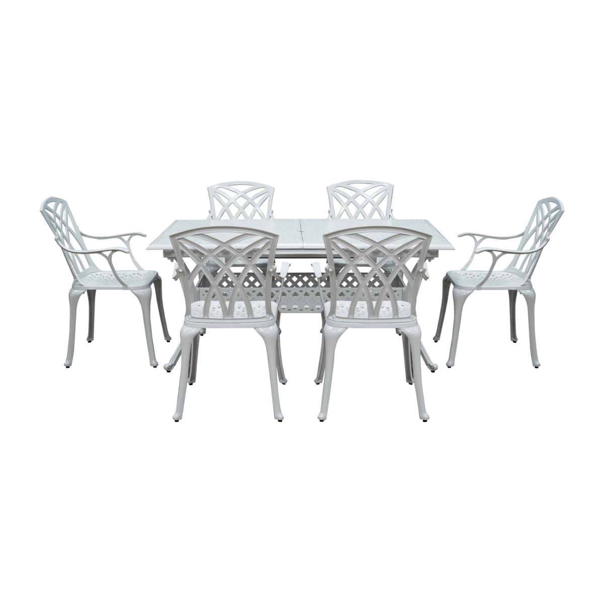 Enjoy your spring and summer in style with the Signature Homes & Gardens Cast Aluminium Dining Set, designed to offer both elegance and durability for your garden or conservatory. The powder-coated finish not only provides a sleek and modern look but also offers enhanced protection against rust, ensuring your dining set stays beautiful for years to come. This set includes cream seat pad cushions for added comfort, allowing you to enjoy your meals or outdoor gatherings in total relaxation. The table is designed with a parasol hole in the centre, making it easy to add some shade when needed. Whether you're hosting a garden party or having a quiet meal outdoors, the adjustable feet provide added stability, ensuring your table and chairs stay steady on uneven surfaces. The set includes 8 powder-coated cast aluminium chairs, offering a durable and stylish seating option for your guests.