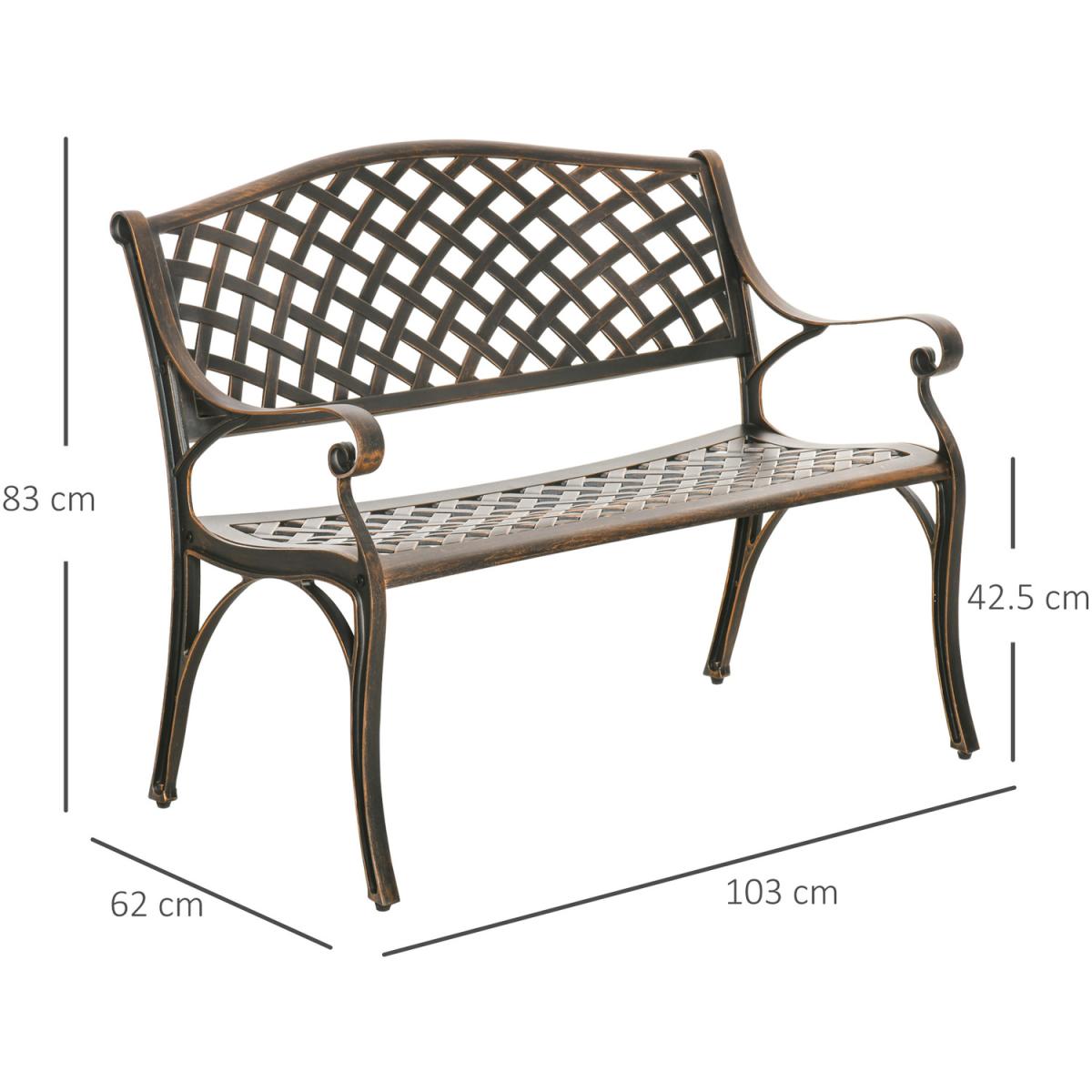 Sit, relax and rest outdoors in style with this outdoor bench from Outsunny. Made from high quality and durable cast aluminium, the backrest has been crafted into a beautiful weave design which works wonderfully in all gardens, patios and other outdoor spaces. Its aluminium construction also means this bench has been built to last, with two-process coating to protect the bench from weather elements. Perfect for taking some time out, reading a book in the sun or simply socialising with friends.