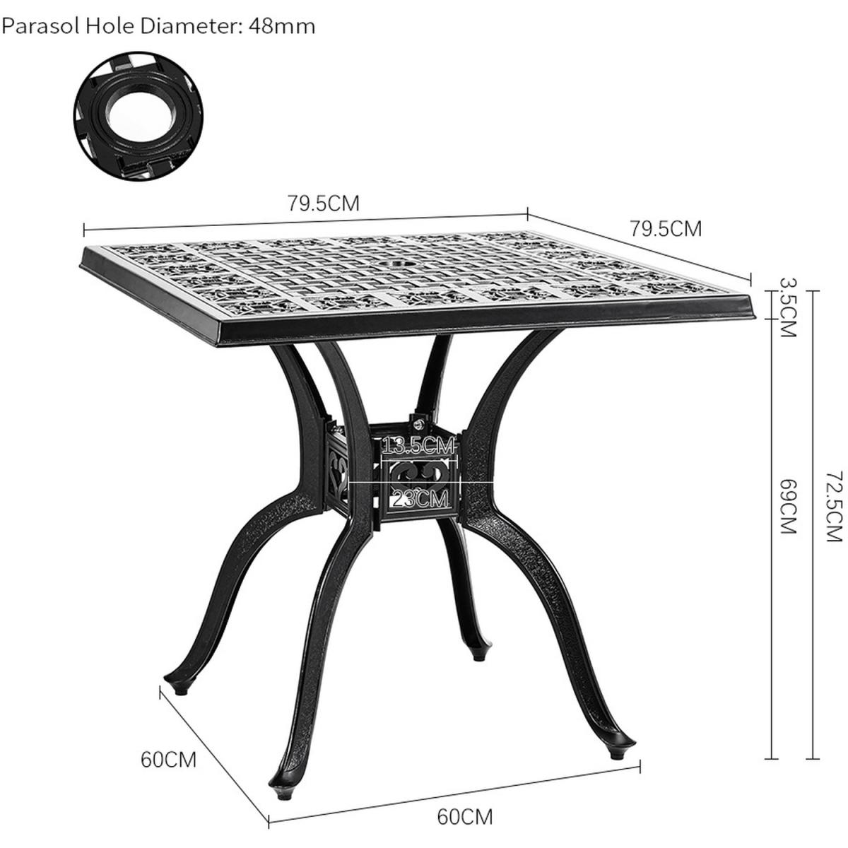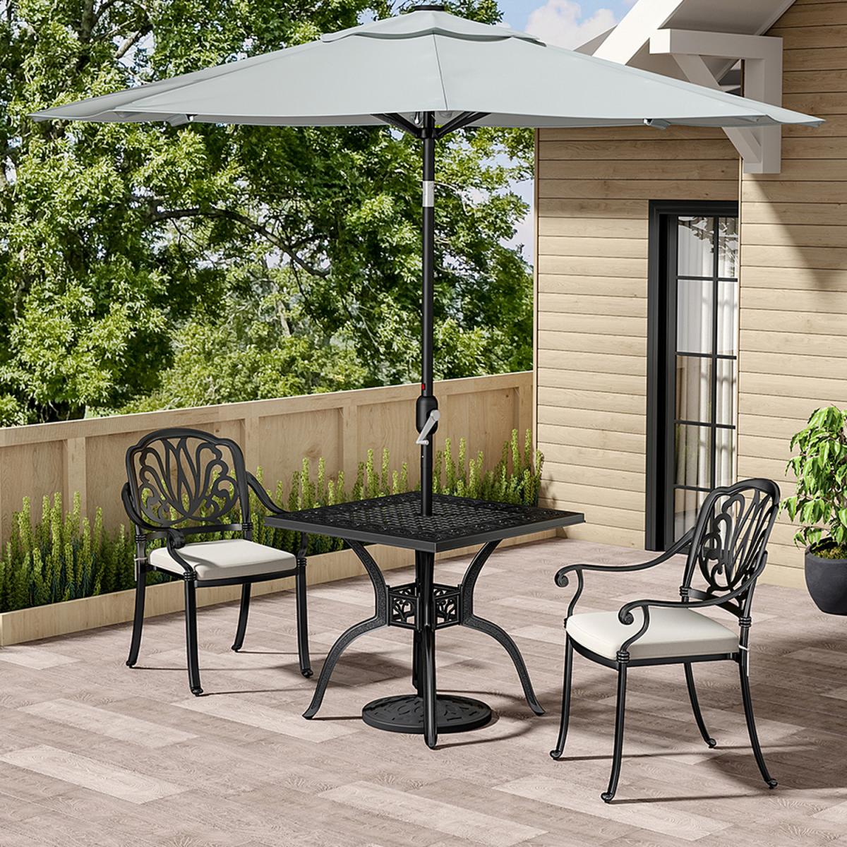 This black cast aluminium bistro set is a versatile choice for outdoor dining, thanks to its sleek and durable design. I love how its timeless black finish lends itself well to both modern and traditional garden styles, and it can be effortlessly paired with colourful cushions or surrounding greenery for a relaxed, inviting look. It works particularly well in small patios or balcony spaces where a compact, functional setup is needed, but can also be styled with a few decorative accessories like strings of lights or a lightweight tablecloth for added flair. Practical tips include choosing weather-resistant cushions that can be stored easily, and positioning the set in a shaded spot during peak sunlight to prolong its lifespan and keep your outdoor dining experience comfortable.