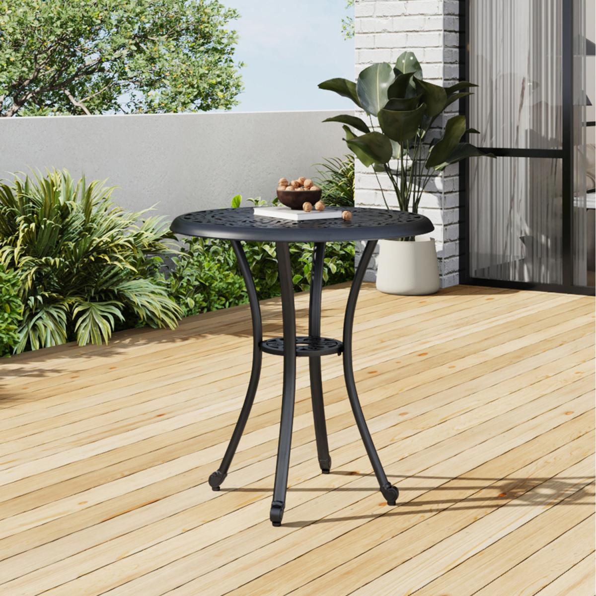 The Garden Sanctuary patio table is designed for outdoor enthusiasts who seek quality and comfort. It is an excellent garden table and backyard barbecue table, and a focal point for outdoor seating areas. The use of high-quality metal not only makes the table sturdy and durable, but also withstands the test of various outdoor environments. The exquisite hollow design serves a decorative purpose and adds the finishing touch to your outdoor seating area. This design features an intricate vintage-style pattern, typical of traditional European ironwork. The pattern is reminiscent of nature, with curling vines and leaf-like shapes intertwined in an exquisite and ornate manner. It exudes old-world charm and is ideal for those seeking a classic decorating style.