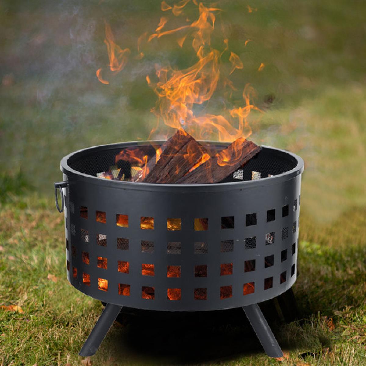 Cast Iron Fire Pit Outdoor Camping Stove Grill Heater With Poker - Black / 68.5cm / Round