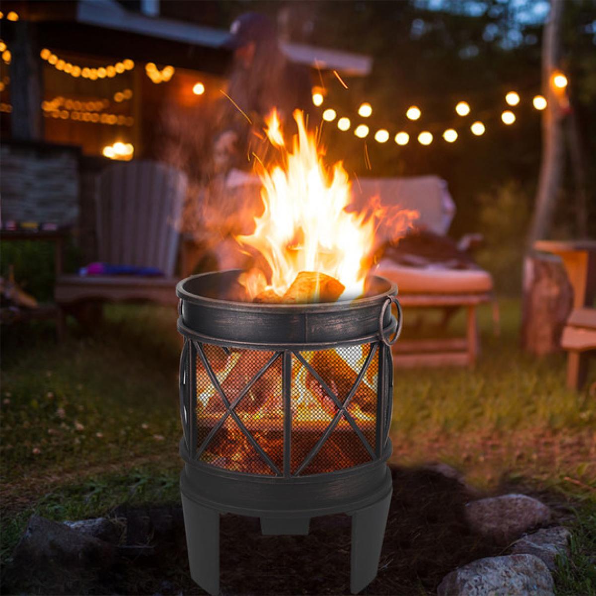 Cast Iron Fire Pit Outdoor Camping Stove Grill Heater With Poker - Bronze / 45cm / Round
