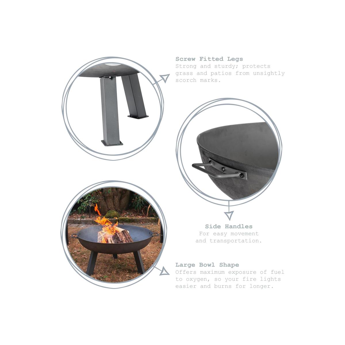 Few things foster feelings of kinship and camaraderie like gathering round the flickering flames and crackling embers of a fire. Crafted from durable cast iron, these classic fire pits offer excellent heat radiation, creating the perfect space for friends and family to gather round. Three sturdy legs offers excellent stability on uneven terrain, while the inclusion of sturdy side handles makes for easy movement and transportation. Classic industrial styling creates a sure-fire centrepiece in any back garden or terrace. The large bowl capacity offers maximum room for your fuel of choice while aiding air flow, keeping home fires burning for longer.