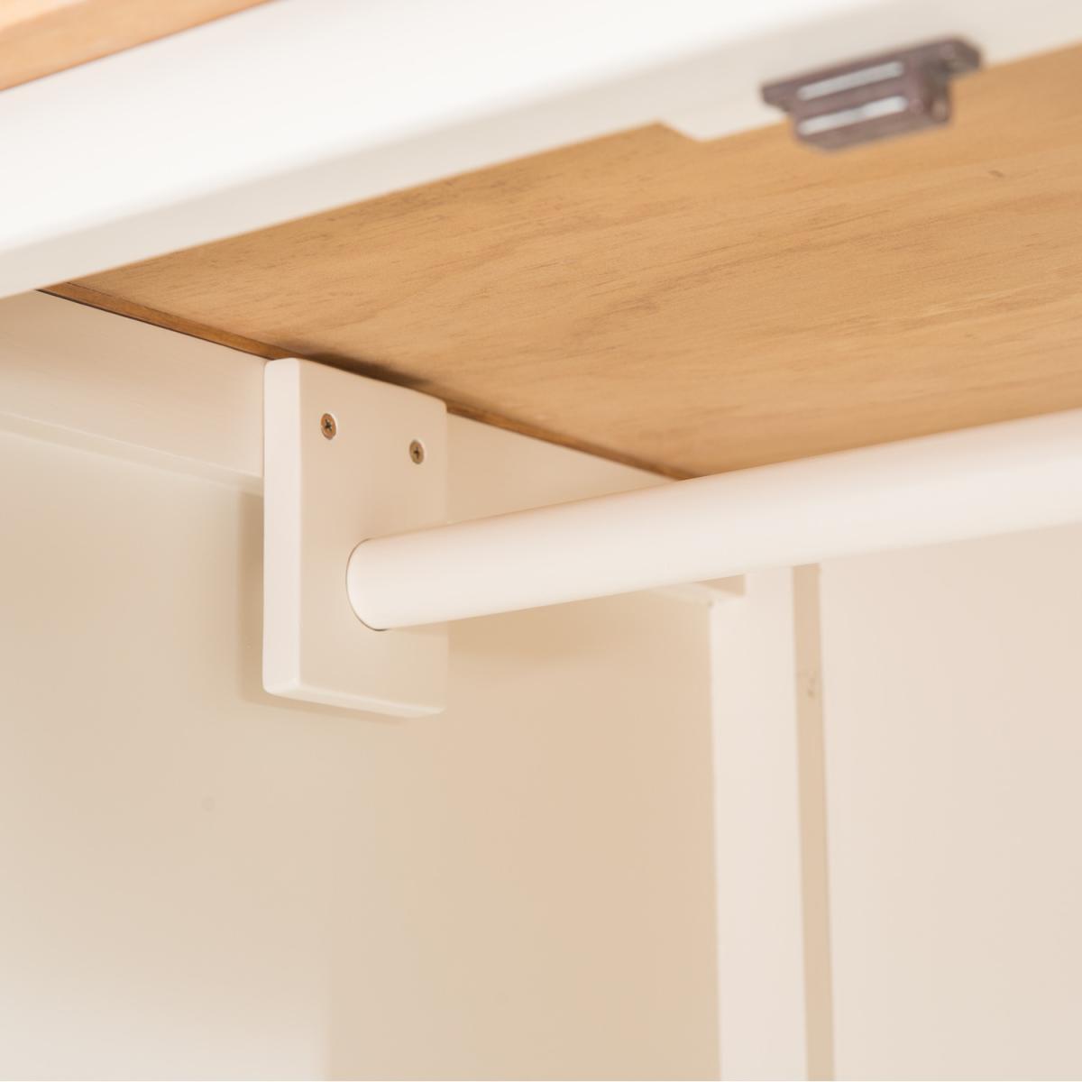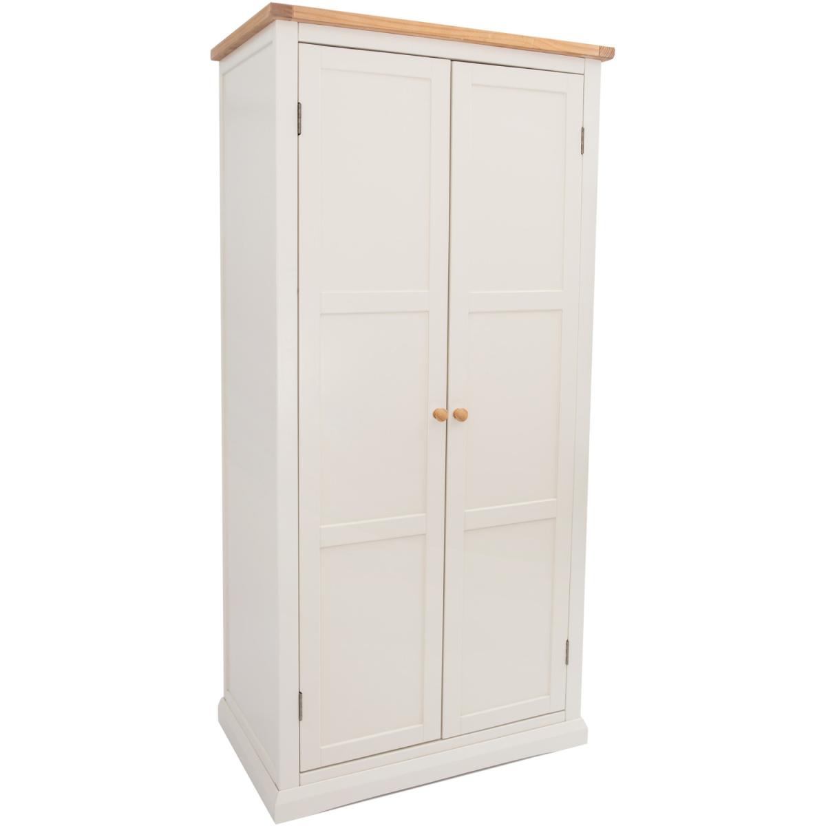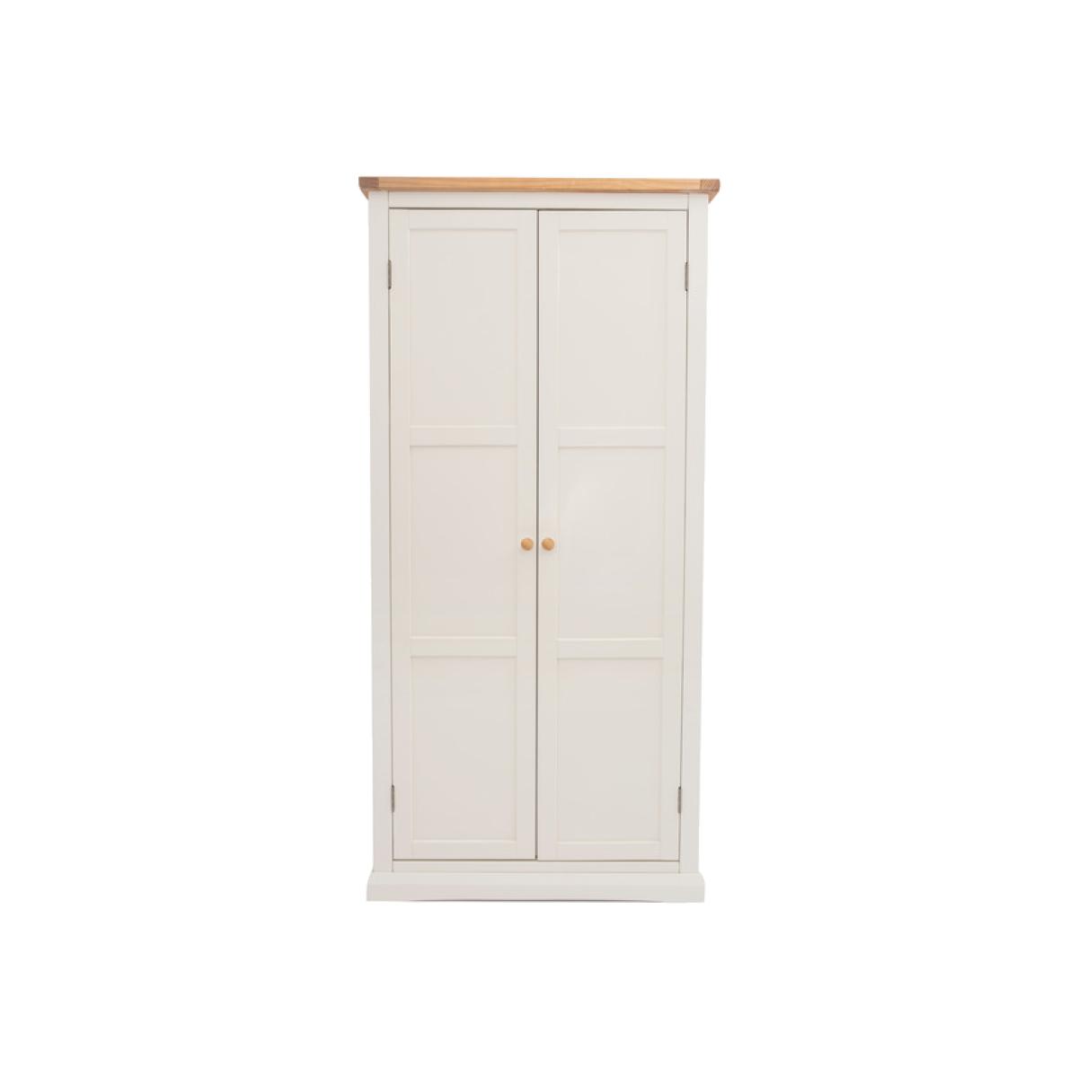 Our Castelli collection has a simple but pleasing design and is produced by our skilled craftsmen to the highest standards using responsibly sourced wood and veneers. All tops are made using a combination of solid pine wood and veneers and carefully hand waxed, giving them a great look. The body is finished with high-quality eco-friendly water base paint in an off-white colour. This two-door wardrobe can house your clothes in a variety of ways. The rail at the top allows you to hang your clothes freely without creasing, there is a shelf in the lower part of the robe but this can be removed if you wish to have full hanging space. If you keep the shelf in it creates a separate storage area below for folded clothes or shoes or indeed for spare bedding, also you can use the shelf itself as further storage. These attributes combined with a simple construction for easy assembly make it a great value product to be taken home today.
