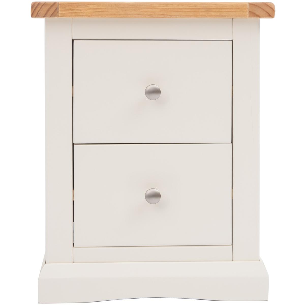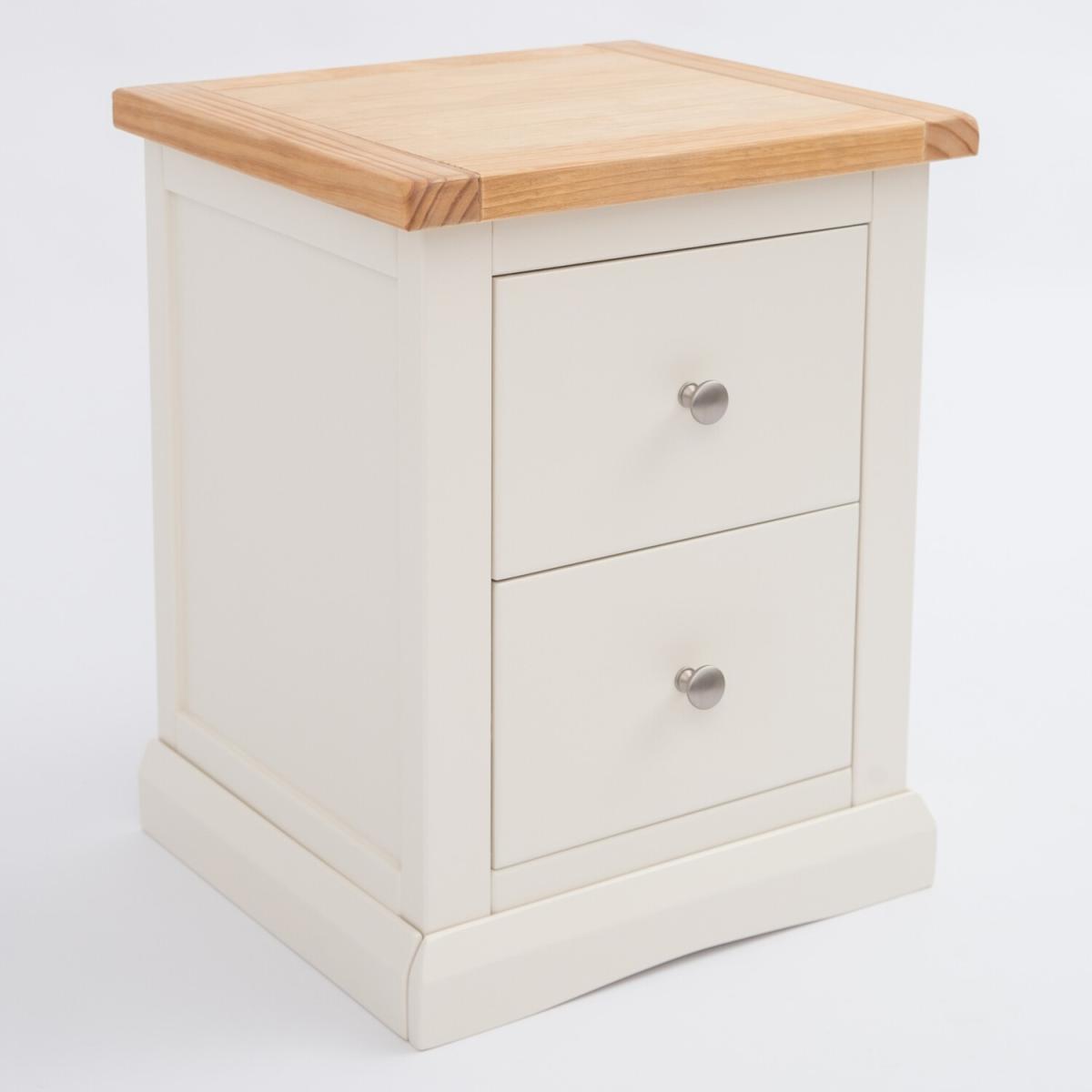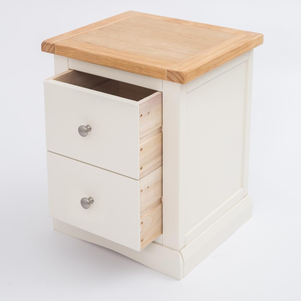Our Castelli collection has a simple but pleasing design and is produced by our skilled craftsmen to the highest standards using responsibly sourced wood and veneers. All tops are made using a combination of solid pine wood and veneers and are carefully hand-waxed giving them a great look. The body is finished with high-quality eco-friendly water-base paint in an off-white colour. This generous two-drawer bedside has deep drawers which allow all your requirements to be kept close to the bed and within easy reach, it also allows you to keep the top clutter-free and ready for your morning cuppa. These attributes combined with a simple construction for easy assembly make it a great value product to be taken home today.