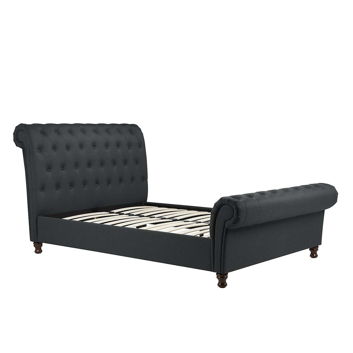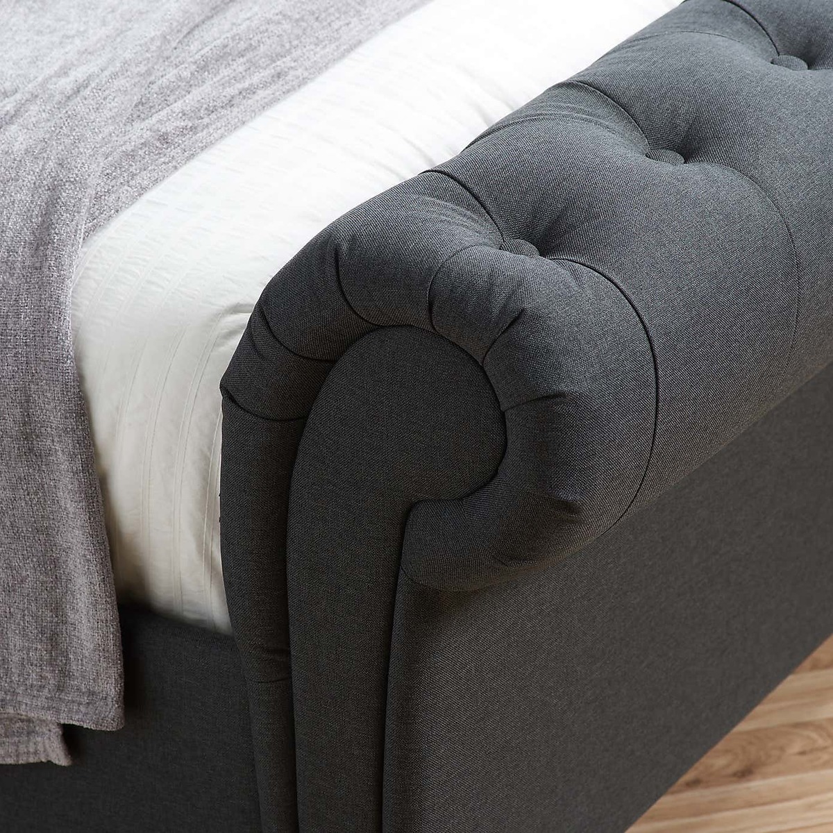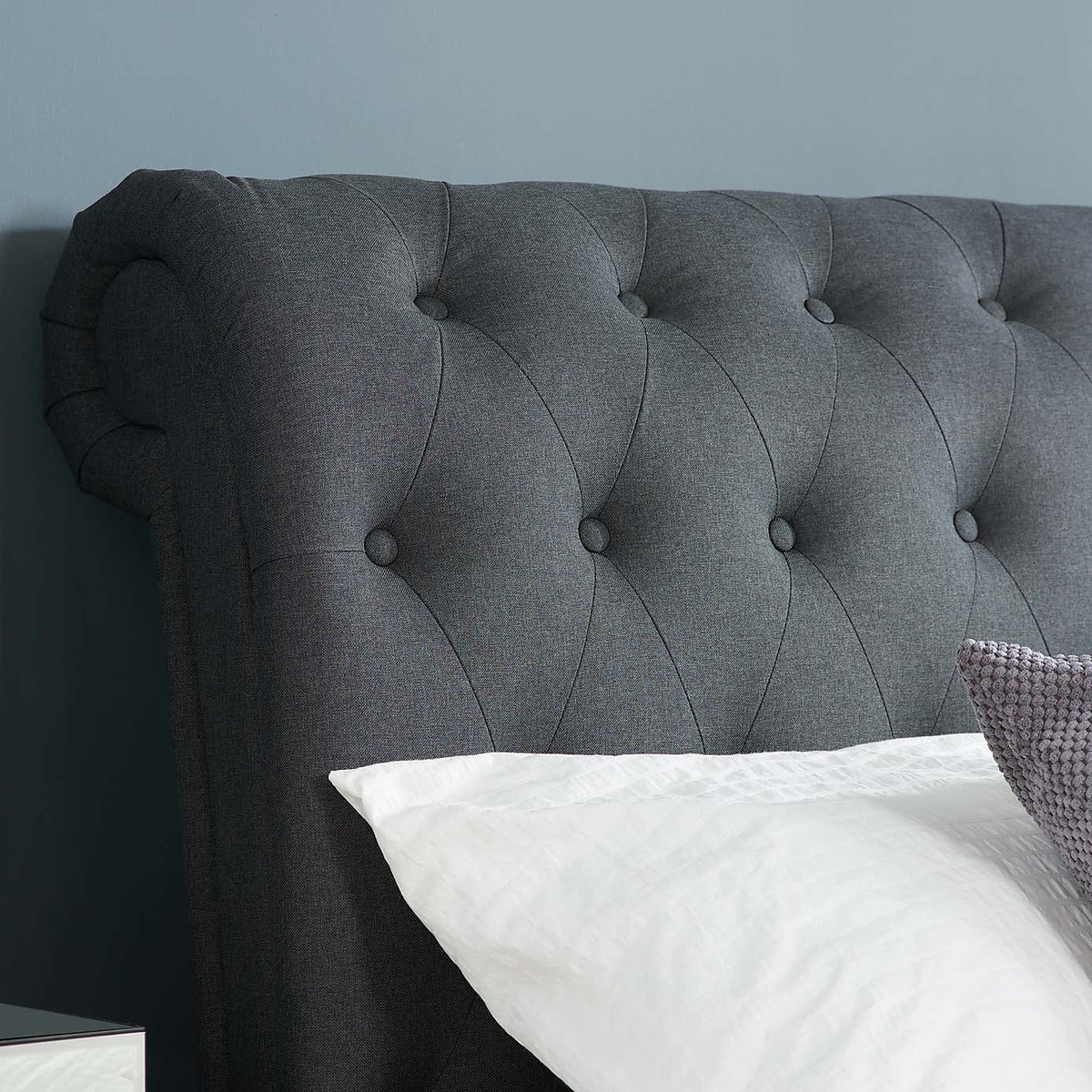 Castello Charcoal Sleigh Fabric Bed Frame Black