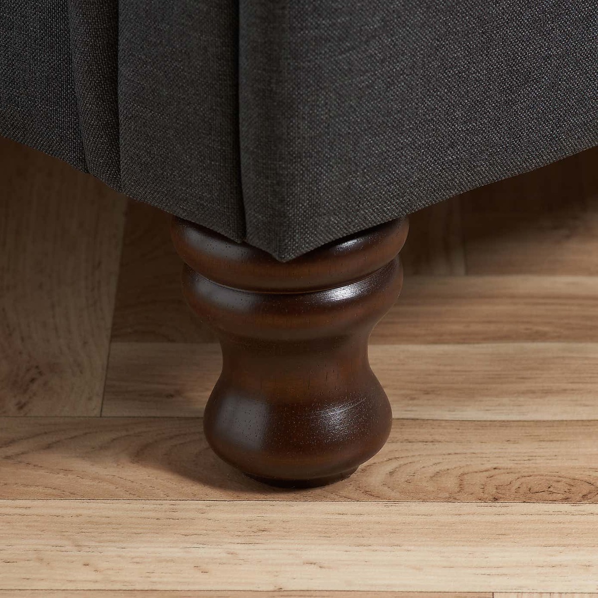 The luxurious Castello Fabric Bed Frame combines stylish buttoned detailing with a rolled headboard and footboard design, creating the perfect statement piece. It features a charcoal polyester finish with complementary dark rubberwood feet. With a sprung slatted base for natural bounce, the frame adjusts to where pressure is exerted most, providing greater comfort. Please note, unfortunately, we cannot deliver this item to the Channel Islands.