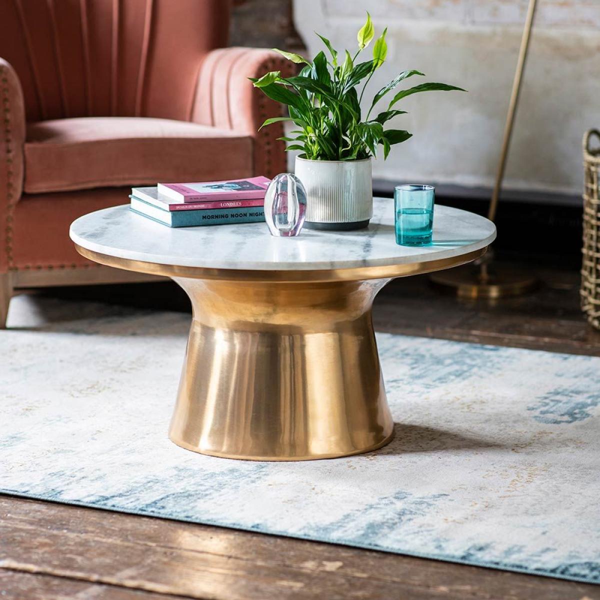 I love the castello marble coffee table for its elegant yet versatile design. Its rounded marble top introduces a touch of luxury and works beautifully in both contemporary and classic interiors. The statement gold base adds warmth and sophistication, making it a focal point without overpowering the space. This table is ideal for open-plan living rooms or neutrally coloured interiors, where it can be styled with lush textiles or minimal accessories. Practical styling tips include pairing it with a mix of textured cushions and soft throws for a cosy feel, or keeping accessories simple-perhaps a few favourite books and a potted plant-to highlight its sleek silhouette. Its sturdy construction and timeless aesthetics make it a great investment piece that can be styled up or down depending on your mood.