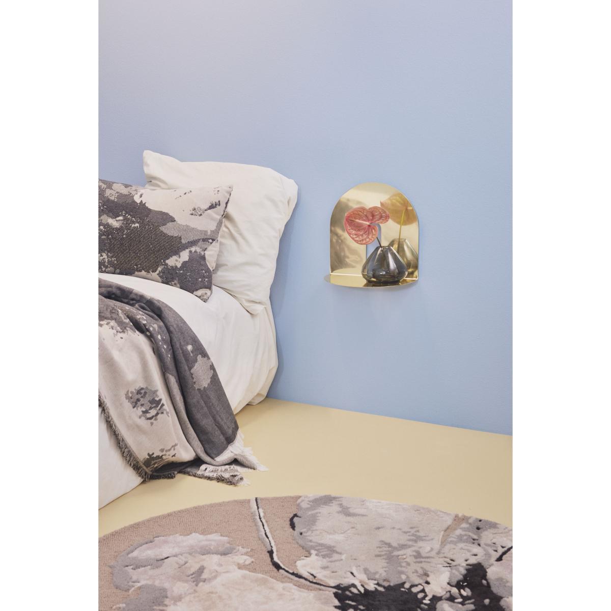 Curved and unusual lines are on the agenda for this small, minimalist shelving unit which is sure to make for an original wall decoration. Made from a fine, folded metal sheet, the Castellum shelving unit found its inspiration in the famous Grundtvig Church, a expressionist masterpiece in Copenhagen. The steel arch represents strength and stability - just like the doors of the Grundtvig Church. The central opening creates a playful illusion of mise en abyme. The symmetrical cut adds character to the silhouette an reveals the wall behind the shelving. Installed on its own or as a pair in a real feature wall type arrangement, the Castellum shelving unit draws the eye with its delicate presence. This shelving unit is the perfect way to display your most beautiful objects, bouquets of flowers, books… Tidying away is good, but putting items on display is best! Castellum will look great on every wall in your home: living room, kitchen, entrance, bathroom or bedroom.