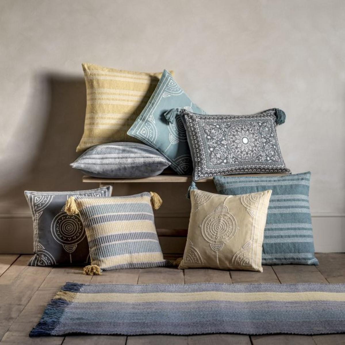 Chhatwal & Jonsson Tattersall cushion Sea blue/cognac 60x40 cm