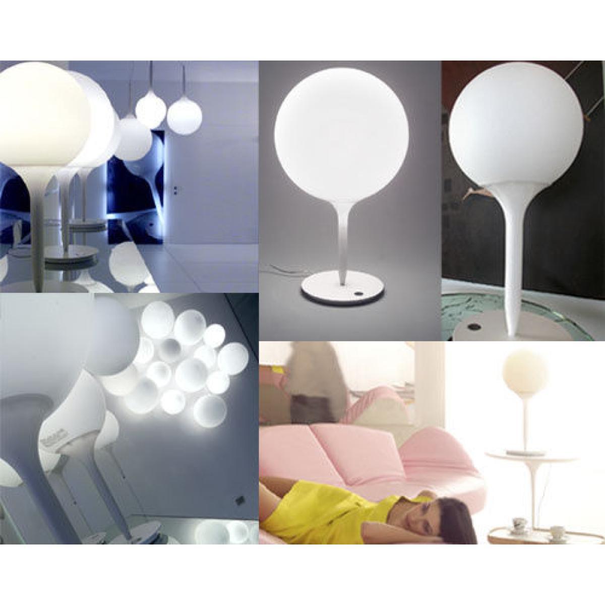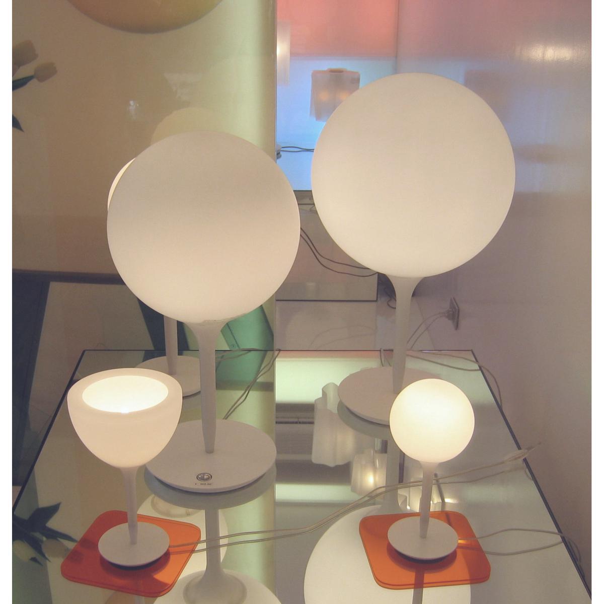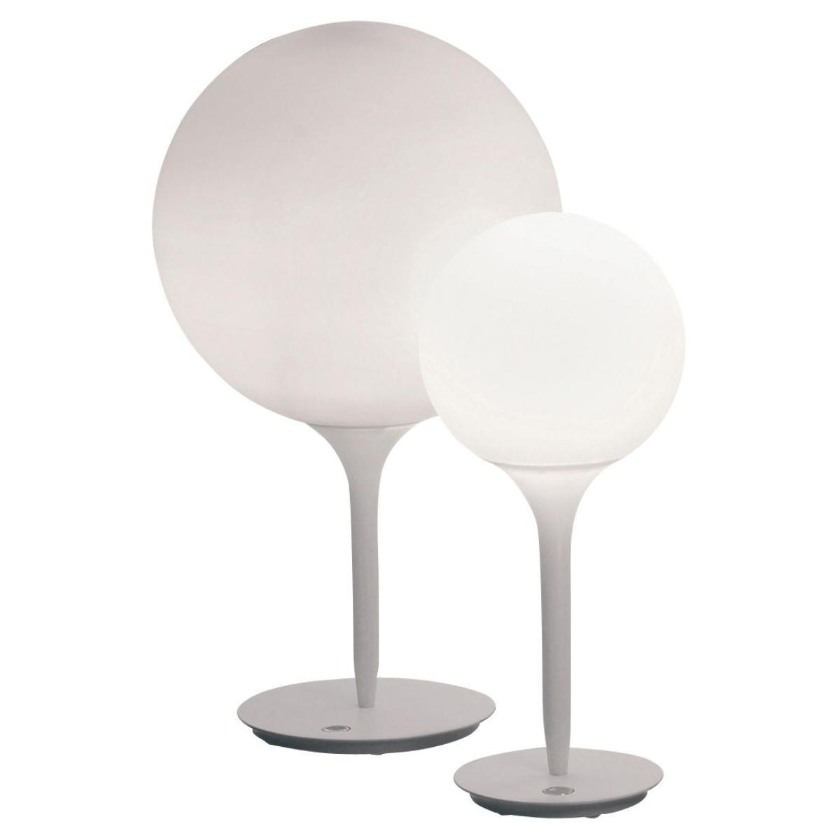 Castore is a table lamp very pure and very graphic with an astonishing light broadcasting. The spherical broadcaster finishes by a luminous stem of constituent flaked form thus a soft passage of the excessive light to the shadow zone of the structure of the lamp. Such a white star, it is realized in blown glass and sheds a light halo soft and broadcasts. Castore is endowed with a sensory variateur, situated on the basis. This one is in zamac and the stem is in resin thermoplastic. Castore is proposed in 3 size: diameter 42, 35 and 25 cm.