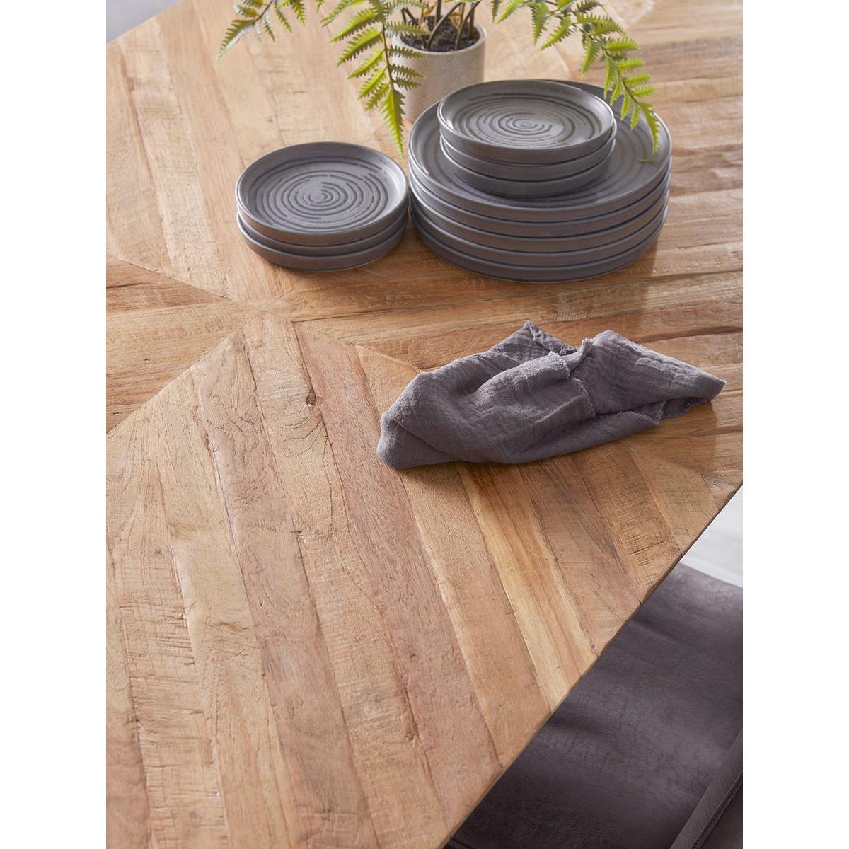 A character-filled herringbone design brings the beautiful reclaimed wooden top of our Castro dining table to life. In varying rich tones, the wood contrasts effortlessly with the striking black metal starburst style legs to create a timeless industrial look. This rectangular table will create impressive impact in both contemporary and traditional homes. The dining table is available in two sizes. Discover our full Castro Range.