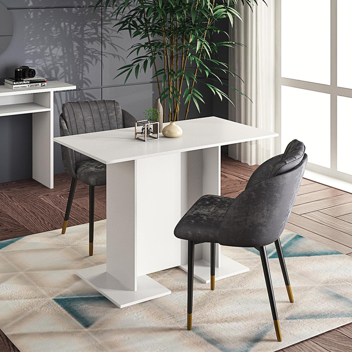 Our dining table with a rectangular MDF top and the iconic base gives the table a bright and modern appearance. It is practical and stylish. A smooth same colour finish runs throughout the table, giving the table a crisp effortless feel. Beautiful two pillar support, seamlessly connecting the rectangular base and the tabletop. The dining table boasts a large surface leaving plenty of room for guests and has a slick high gloss lacquer finish making it a stand out addition to any home! Perfect to sit around with friends to enjoy tea break, chatting, reading, etc.