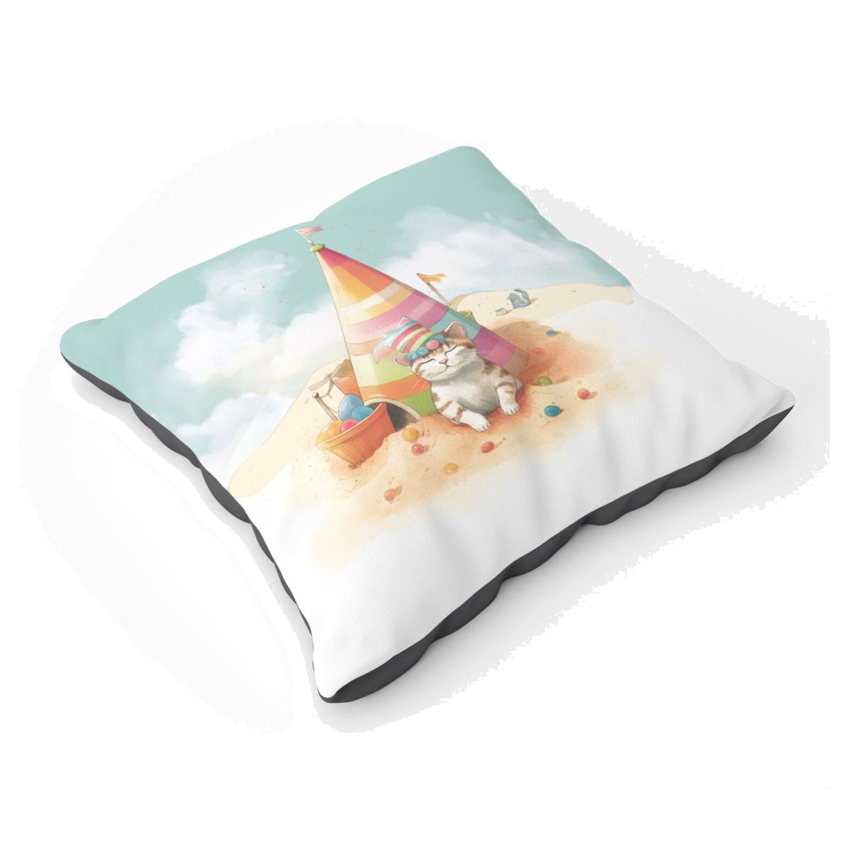 Cat On A Beach Holiday Floor Cushion - Yellow