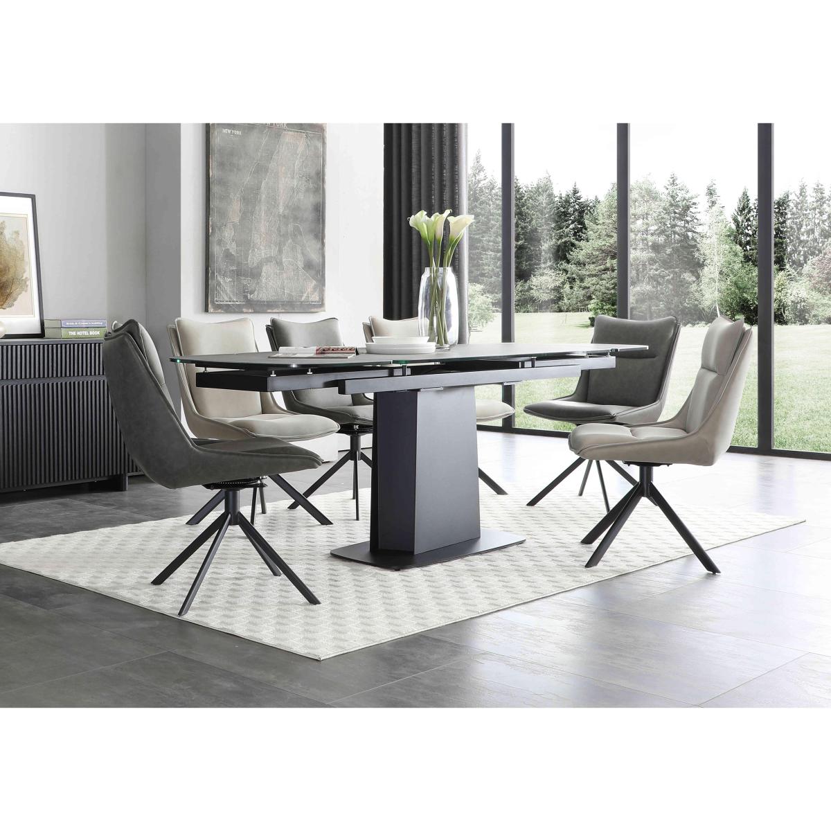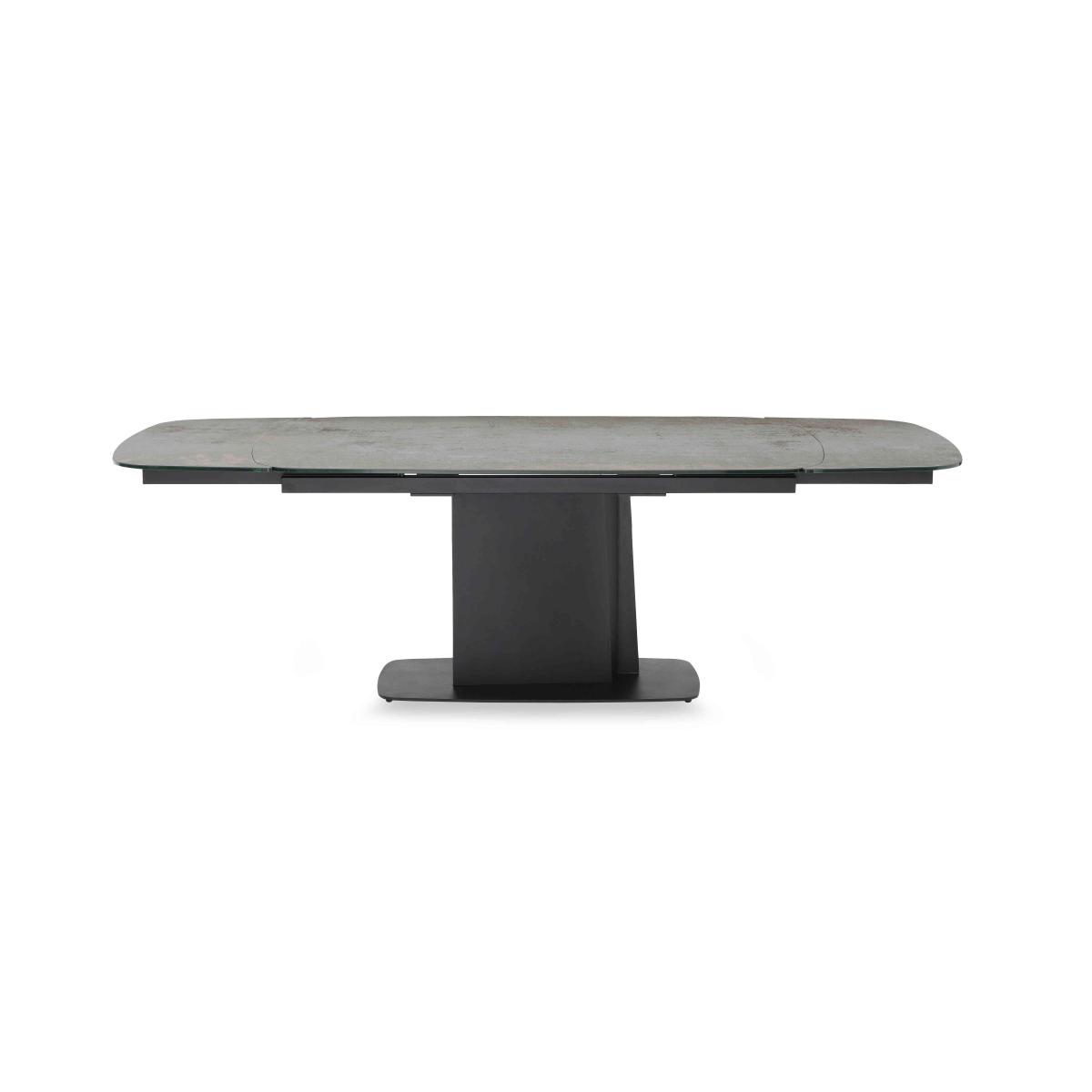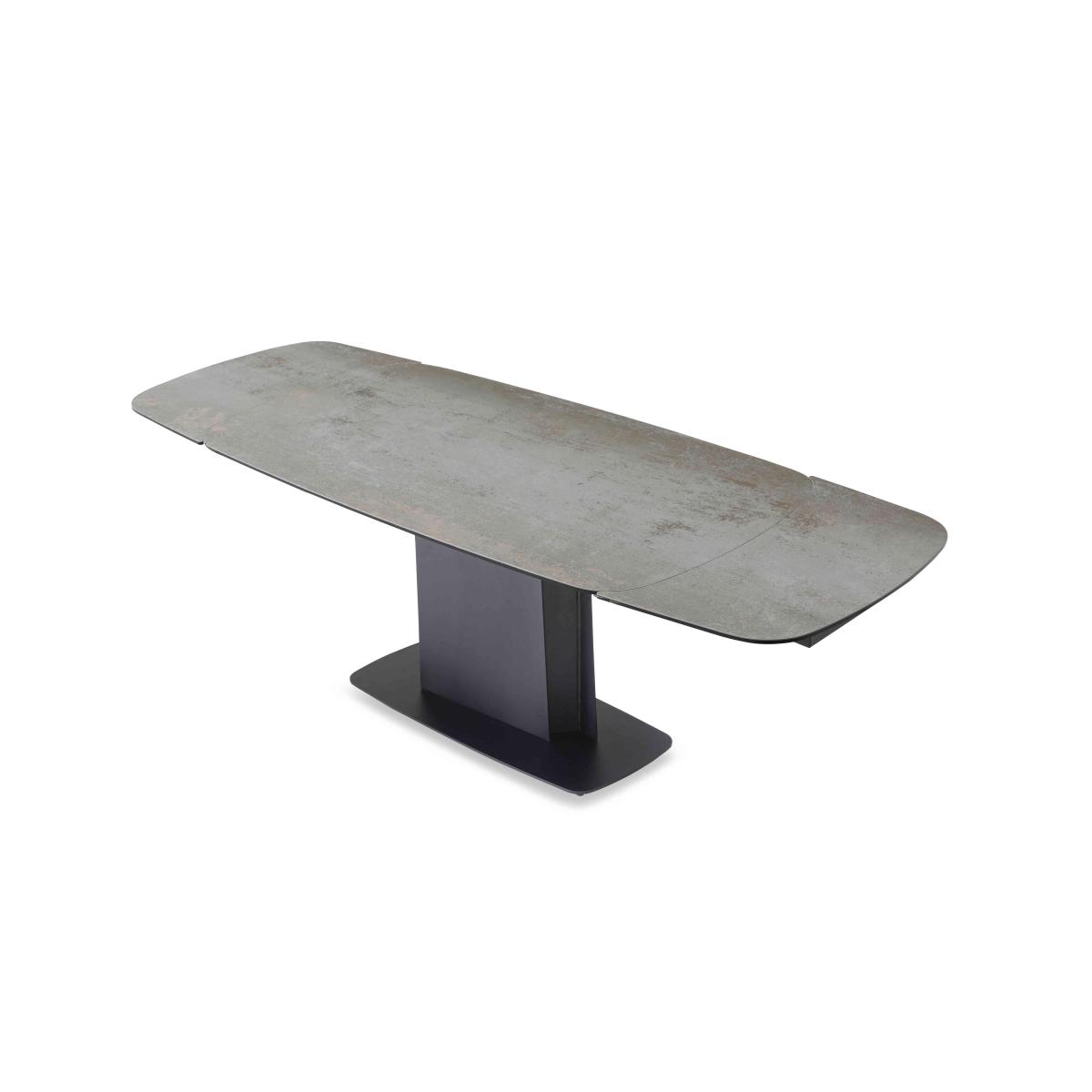 Beautifully crafted with a bold urban aesthetic and high-quality finishes, our Catalina range is designed to catch the eye. Boat-shaped dining and occasional tables are topped with stunning Spanish ceramic and have asymmetric metal pedestal bases, while storage pieces feature black wood-effect frames with slatted doors and decorative panels. And you’ll find evidence of superb craftsmanship wherever you look. Dining table extension leaves perfectly match the ceramic patterning of the table top, the TV unit has rounded ends that fit perfectly into the concave sides of the display and curio cabinets, and the elegant dining chairs have ergonomic swivel bases. The Catalina range is exclusively available at Furniture Village. Sleek, smooth and utterly stunning, this fabulous extending dining table has a ceramic top and statement metal pedestal base. Only at Furniture Village. Why you'll love it Stunning urban style, superb craftsmanship. Extending dining table with asymmetric base is the ultimate dining room centrepiece. Sleek boat-shaped top in beautiful Spanish ceramic. The ceramic is bonded to tempered glass for extra durability. Ceramic is scratch-resistant, chip-resistant, heat-resistant and so easy to clean. Ergonomic pedestal base makes it easier to seat more guests. Extends easily to seat 10. Extra leaves slide out from the table ends. Ceramic pattern on extension leaves matches the table top, a sign of real quality. There’s a smaller version of this table that seats 8 when extended. Carefully handcrafted and exclusive to Furniture Village. This large extending dining table is part of our Catalina range. What you need to know Dining table seats 8 closed and 10 when extended. Metal frame and base. Please note that the ceramic table top is not 100% heatproof. We recommend using coasters and placemats at all times. Browse our Catalina range for striking dining room furniture and living room tables.