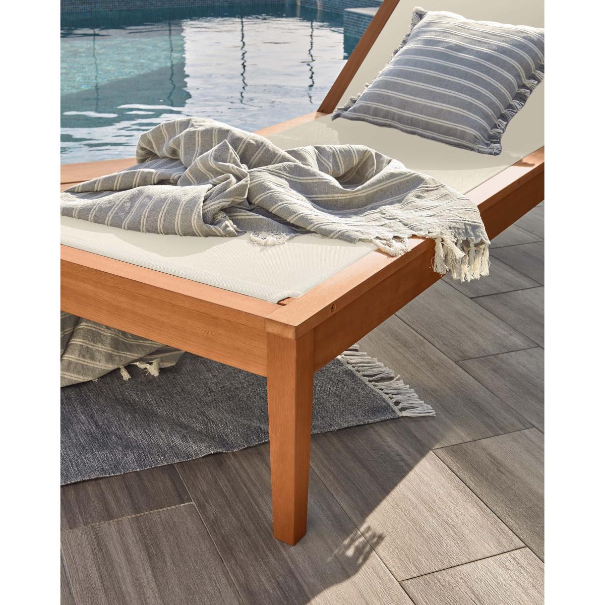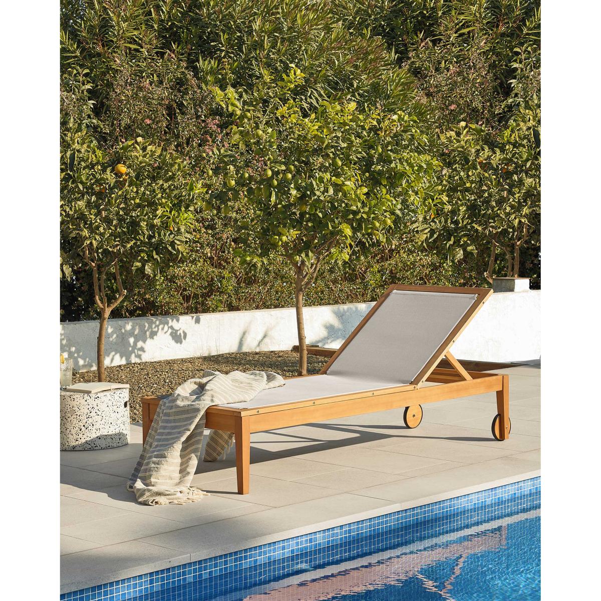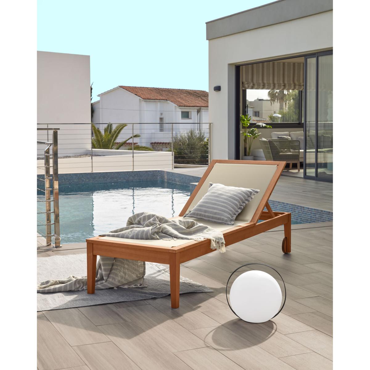 I love this sun lounger’s clean design and natural materials, which make it a versatile addition to many outdoor spaces. Its solid eucalyptus wood frame pairs beautifully with modern, Scandinavian, or boho gardens, giving a relaxed yet stylish vibe. The beige fabric adds a neutral touch that complements greenery and outdoor furnishings effortlessly. For styling tips, consider layering with textured cushions or a lightweight throw for extra comfort, and position it near potted plants or a shaded pergola to create an inviting lounging nook. Its FSC-certified build also ensures eco-conscious appeal, making it a practical choice for those keen on sustainability.