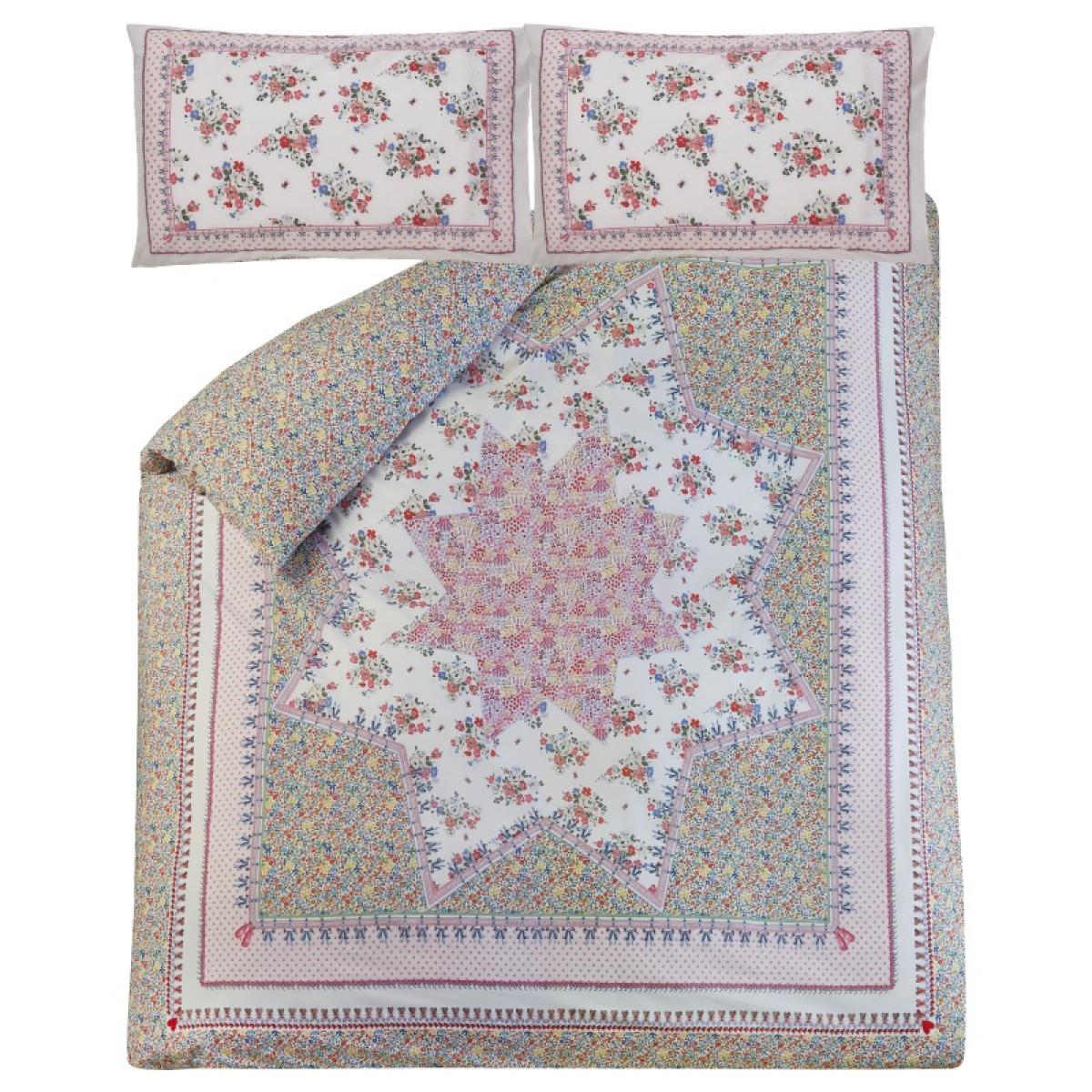Experience the essence of nostalgia and cherished memories with the Cath Kidston Patchwork bedding collection, lovingly crafted from an archive of hand-painted prints that evoke a sense of timeless charm. Featuring a blend of Cath Kidston's beloved prints, both new and old, each piece is intricately entwined with carefully drawn embroidery stitches, ribbons, and bows, creating a patchwork masterpiece. The pillowcases are adorned with placement prints that resemble miniature works of art, printed onto soft cotton with a charming pink and white spot reverse. Embrace the whimsical elegance and sentimental beauty of Cath Kidston's iconic designs, enveloping your sleep space in comfort and style. Features 100% Cotton Percale. 180 Thread Count Button Fastening Care Instructions Machine wash at 40° Tumble dry on low heat Warm iron Do not bleach Do not dry clean Please note All screens vary in colour reproduction and whilst every effort has been made to display the colour as accurately as possible it is for guidance only.