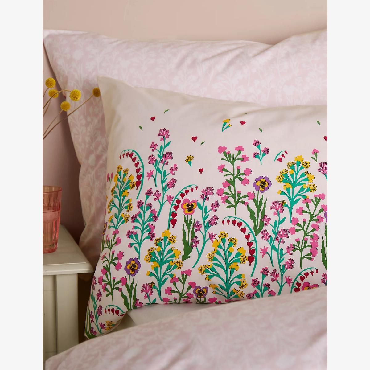 Snooze in classic style with this colourful Cath Kidston Paper Pansy bedding set. It's crafted from smooth and soft 200 thread count pure cotton, which will help you sleep in total comfort. The floral design is inspired by the botanical studies of artist Mary Delany and features bright blooms on one side and a subtle print on the reverse.