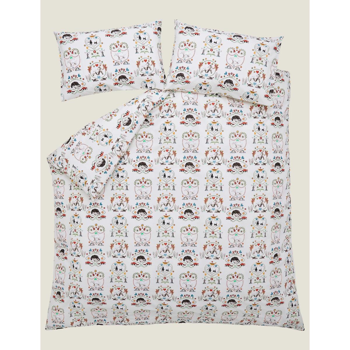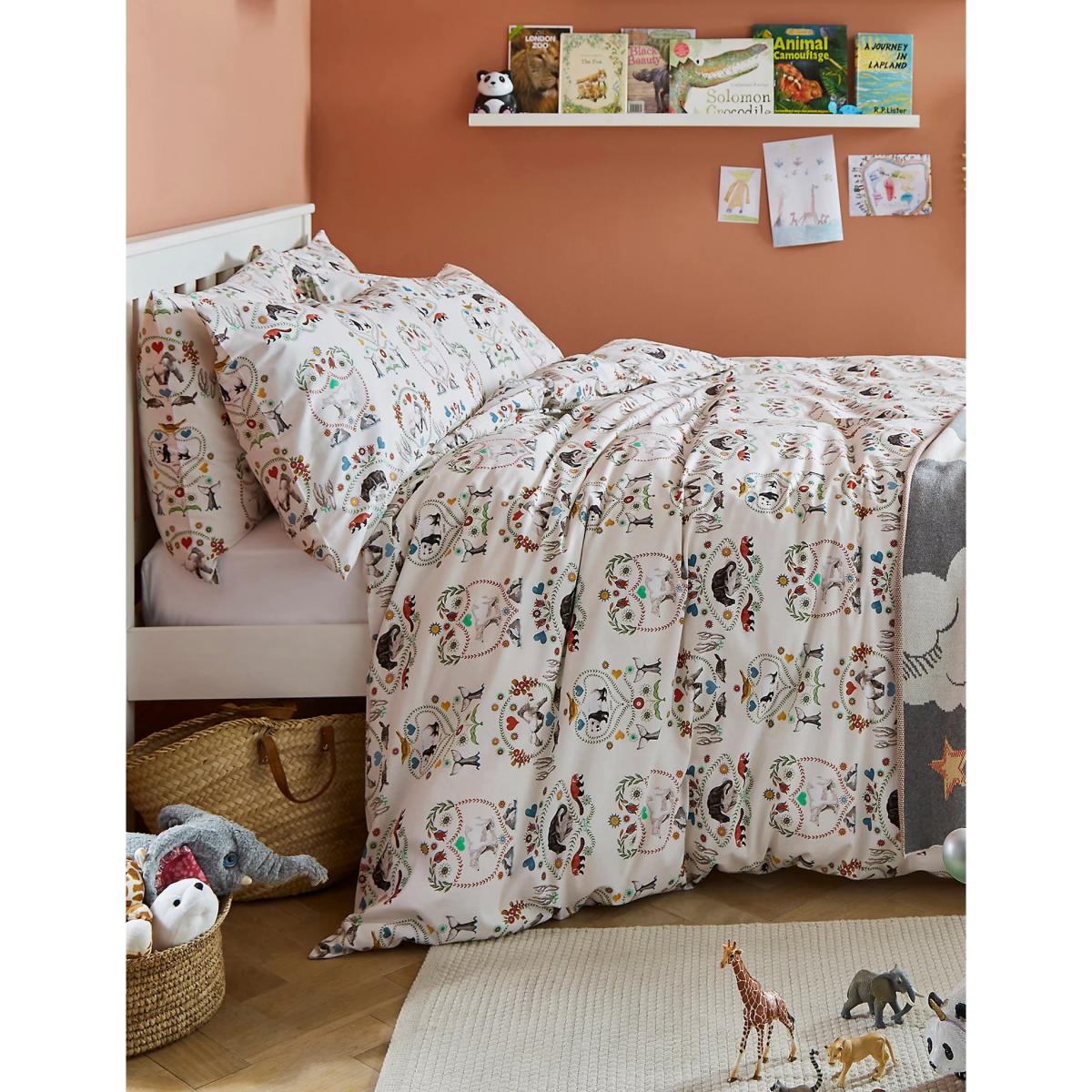 Celebrate the natural world with this Save The Animals bedding set by Cath Kidston. The unique print features endangered animals framed in colourful, folk-inspired borders. Spot pandas, polar bears and more, as well as a gorilla with an archive flower in his mouth as a nod to the brand's heritage. This set is made from breathable pure cotton.
