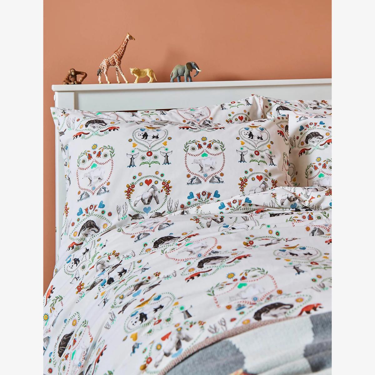 I really like this set because its playful animal print on soft cotton gives a fresh, cheerful vibe, perfect for adding a touch of personality to a child's bedroom or a guest room. It works well in rustic, vintage-inspired schemes or modern spaces looking to soften with a cosy, homey feel. For styling, consider pairing it with neutral, textured bedding or warm-toned accessories to let the prints stand out. A simple bedside lamp and a few plush toys or decorative cushions can also help create a welcoming, relaxed atmosphere. It's a practical choice too, thanks to its cotton fabric, ensuring comfort and ease of washing.