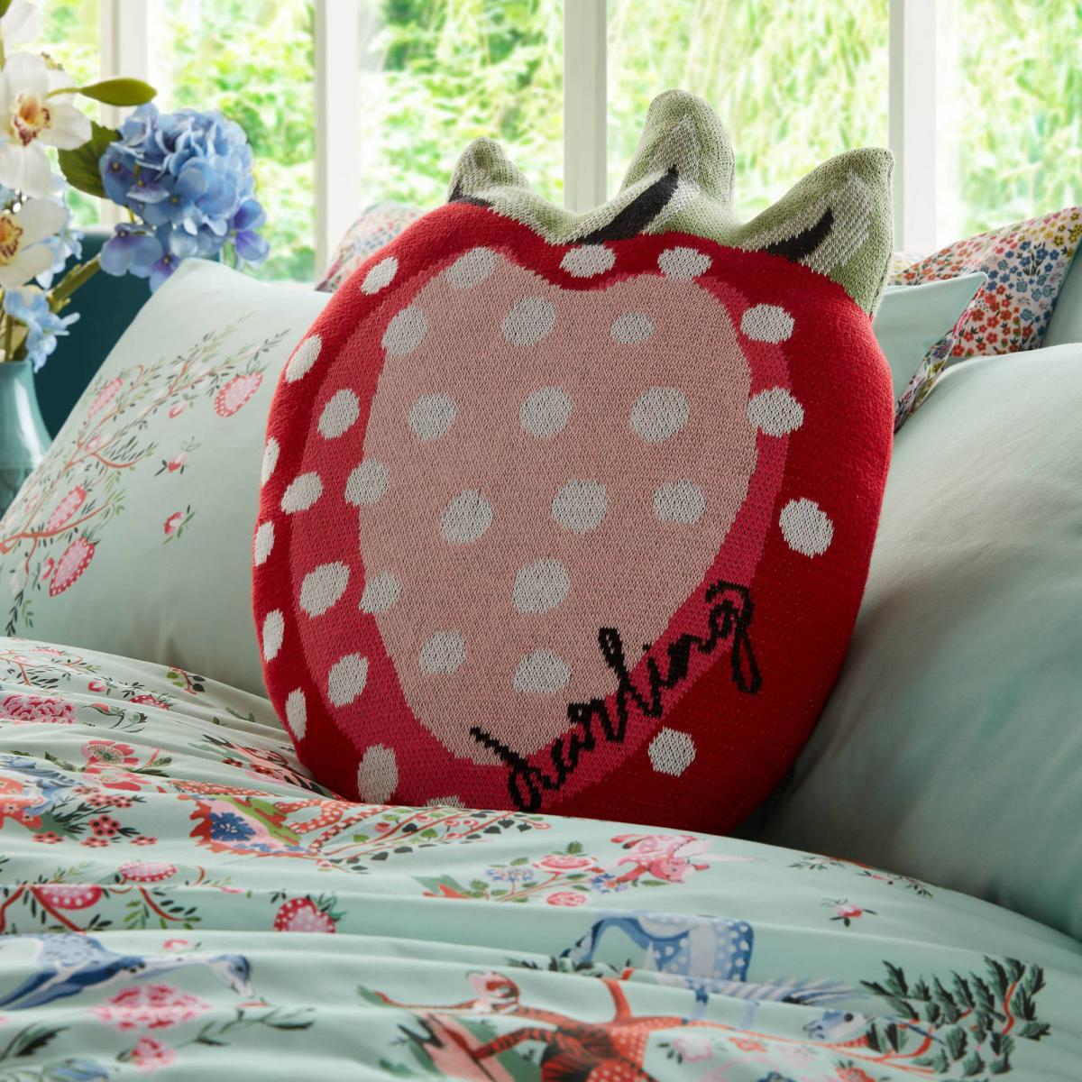 Drift away to Strawberry Dreams with Cath's super soft knitted cotton cushion in a unique shape. Strawberries have always been a strong part of the Cath print identity and are seen as one of the icons for the brand. Perfectly finished with a darling signature this cosy cushion will be a fun addition to your room. Knitted design Dry clean only All screens vary in colour reproduction and whilst every effort has been made to display the colour as accurately as possible it is for guidance only.