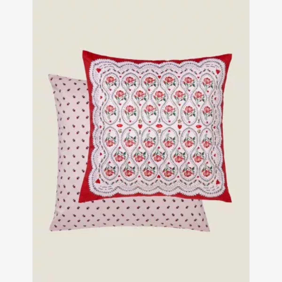 This cushion is a lovely way to introduce a touch of vintage charm to eclectic or traditional interiors. I love the rich, multi-coloured embroidery which adds texture and visual interest without being overpowering. It works particularly well in relaxed living rooms or cosy bedrooms where tactile elements are key. For styling tips, try pairing it with a mix of florals and classic patterns for a layered, curated look, or use it as a statement piece on a neutral sofa to bring in colour and pattern. Its versatility makes it a great choice for adding personality to both modern and more classic spaces.