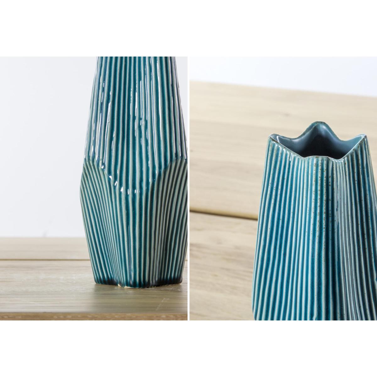 The dramatic styling of the Cathcart Textured Blue Vase is sure to create impact in your home. The unusual rippled shape to the top and textured vertical detailing throughout evokes a strong image of the ocean, which, alongside the Turquoise Blue Glass, gives this piece a real wow factor!